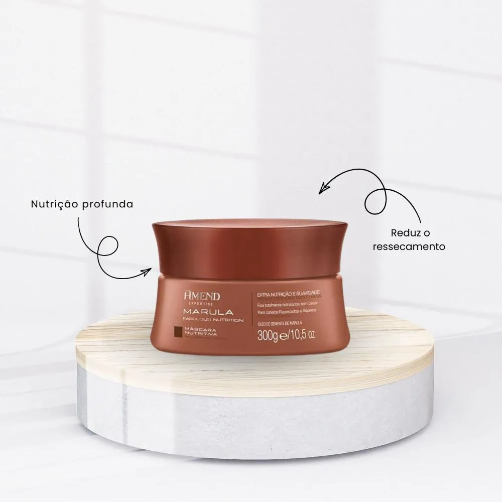 O Kit 2 Máscara Amend Marula Nutrition Nutrição foi criado para oferecer reposição lipídica intensa, combater o ressecamento e restaurar a maciez natural dos fios. A fórmula rica em óleo de marula e nutrientes devolve brilho e suavidade imediatos.Para Qual Tipo de cabelo é Indicado?