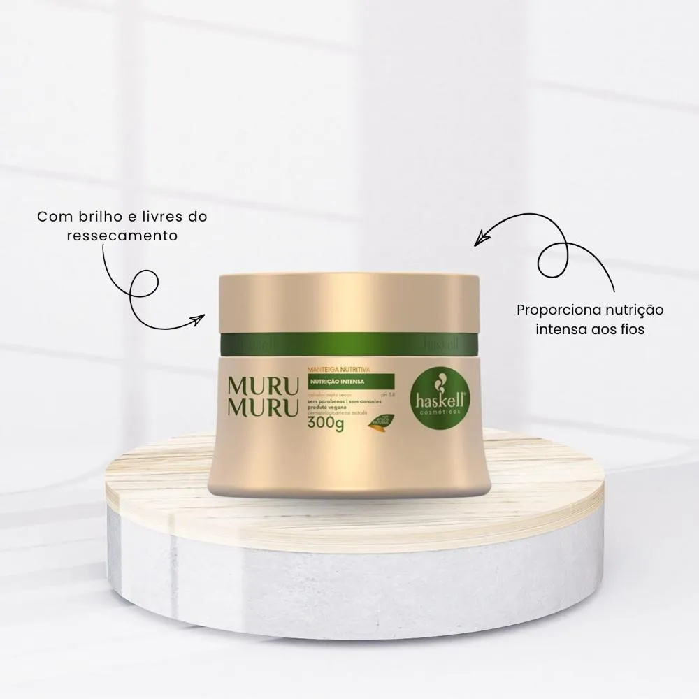 01 – Máscara Capilar Haskell Muru Muru Manteiga Nutritiva 300 g Sugestão de uso complementar:Shampoo Haskell Muru Muru