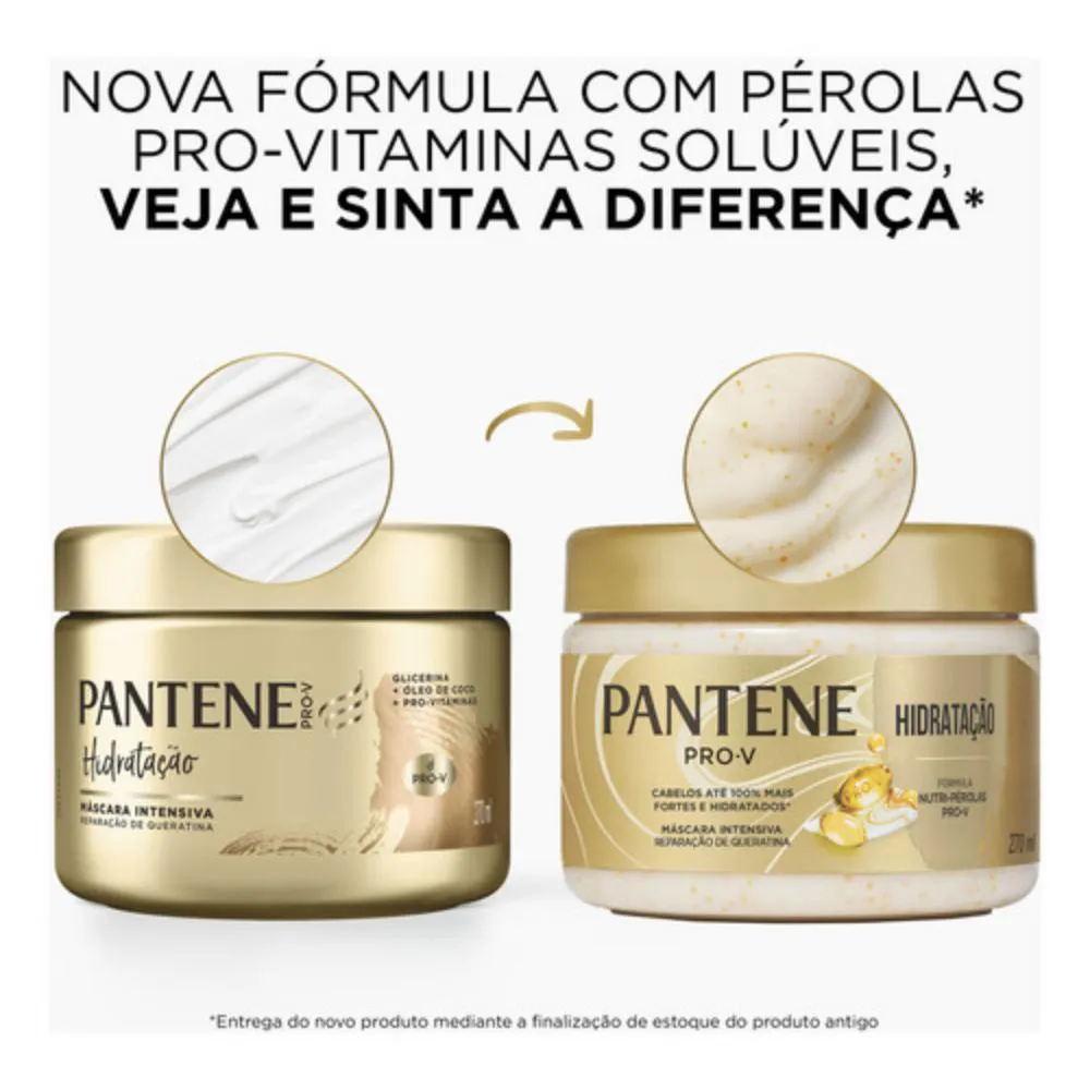 Com pantenol, óleo de coco, glicerina e Pro-vitaminas, a máscara de tratamento Pantene Hidratação proporciona hidratação e nutrição aos cabelos, conferindo extrema maciez e nutrição profunda. Ela também previne cabelos rebeldes, oferece um brilho luminoso às madeixas, reduz a fricção e controla o frizz.