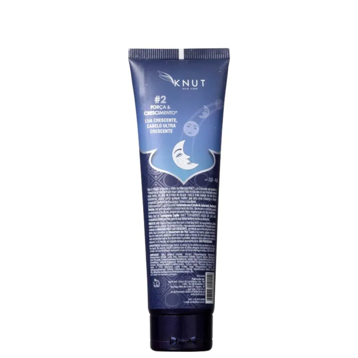 Apresenta a segunda fase do cronograma capilar, com tratamento inspirado na energia e poder revigorante da lua crescente. Máscara Knut Cronograma Capilar Fases da Lua Crescente é turbinada com Extrato de Jaborandi, Bardana e Sericina, que juntos revitalizam os fios e favorecem a desintoxicação da raiz e o combate à queda.