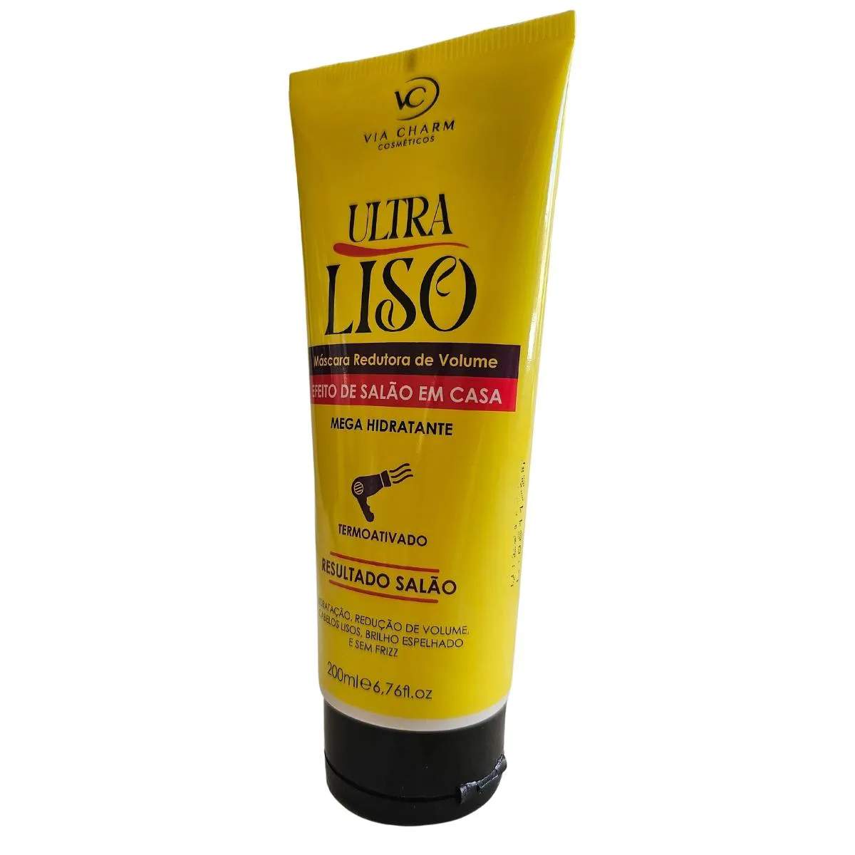 - Alisante de Chuveiro para todos os tipos ou tonalidades de cabelo. Super hidratante, proporciona um alisamento instantâneo. Efeito rápido, alisando e restaurando os fios. Condiciona, fortalece e hidrata os fios, promovendo maciez, sedosidade e brilho intenso. A máscara capilar redutora de volume Ultra Liso nutre e reconstrói as cutículas capilares. Possui um exclusivo complexo que combina ácidos e proteínas que atuam diretamente no controle do efeito frizz, reduzindo o volume dos fios rebeldes. A garantia de cabelos saudáveis, macios e com brilho intenso.