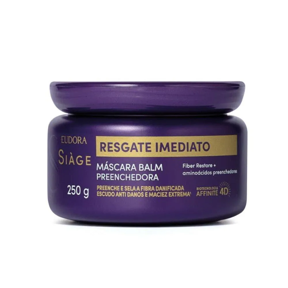 A Máscara Resgate Imediato penetra no córtex capilar preenchendo as partes danificadas do fio e atuando na recuperação dos danos desde o 1º uso. A linha é dedicada para todos os tipos de cabelos, com a exclusiva Biotecnologia Affinité 4D e ativos pensados para reconstruir seus fios, Resgate Imediato Eudora traz benefícios.