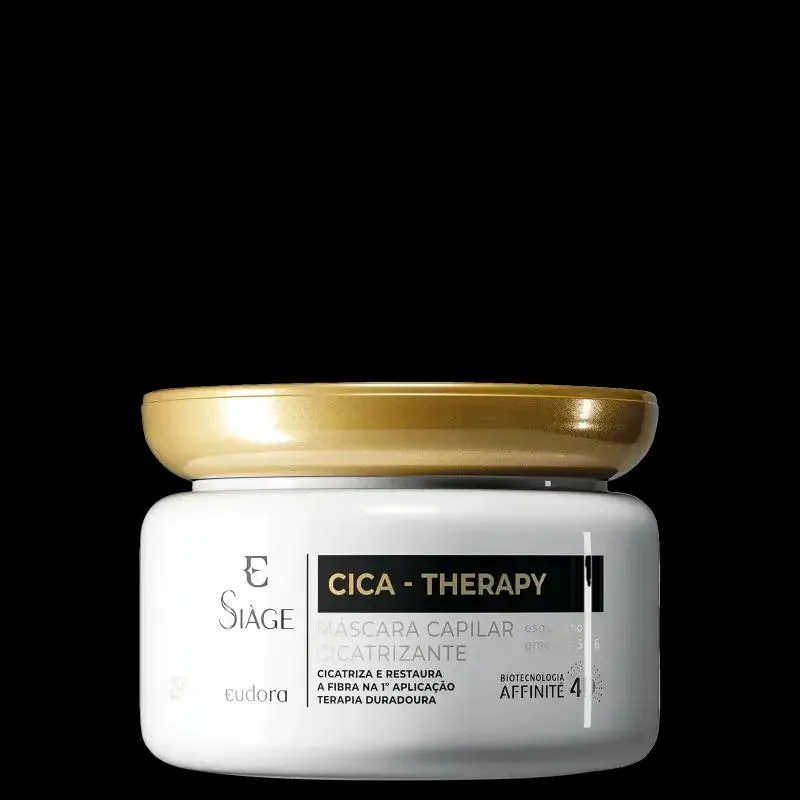 Máscara para cabelos danificados. Eudora Siàge Cica Therapy recupera os danos e repõe nutrientes essenciais, garantindo cabelos fortes e hidratados desde a 1ª aplicação. A Máscara Capilar Eudora Siàge Cica Therapy realiza uma cicatrização imediata dos fios que repara os danos, repõe nutrientes essenciais e protege a fibra capilar. A tecnologia de Siàge Cica Therapy traz uma terapia capilar duradoura para cicatrização das áreas danificadas do cabelo. A cicatrização é o tratamento que recupera a saúde dos fios, devolve nutrientes essenciais e protege contra agressões diárias com os poderosos ativos Esqualano e Ômegas 3 e 6. E não é só isso, o ritual de tratamento traz diversos benefícios, confira quais são eles:
