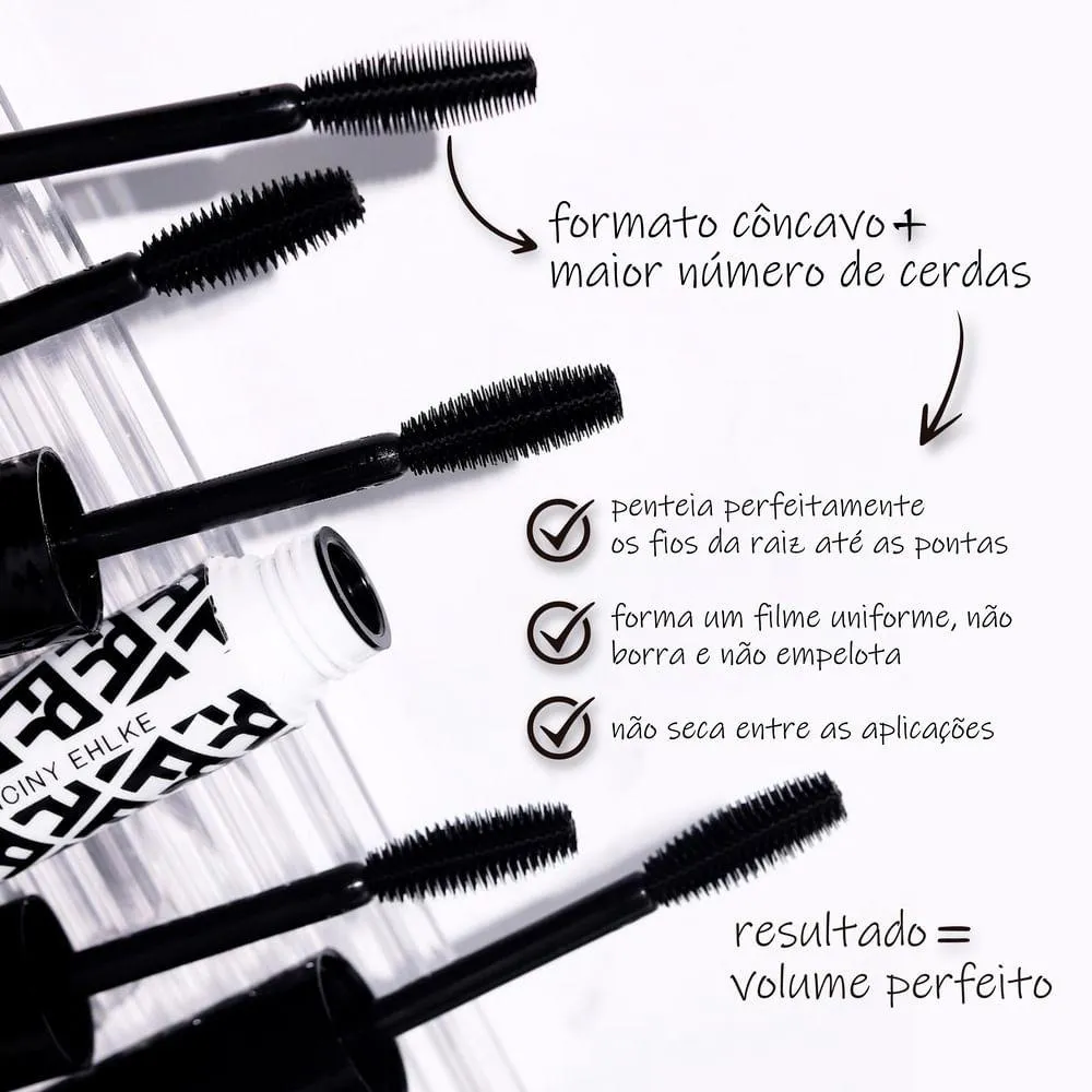 A fórmula permite que o pincel deslize com facilidade, envolvendo cada cílio e proporcionando a perfeita definição.  Nível máximo de volume sem borrar e sem acumular excesso de produto nos fios.
