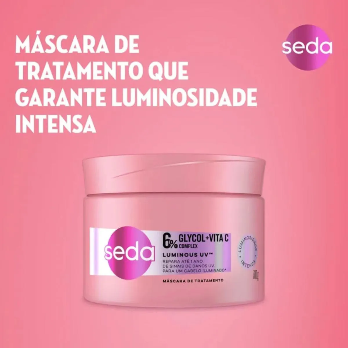 A Máscara de Tratamento Seda Glicol+Vita C 300g foiÁcido Glicólico e vitamina c , dois ativos poderosos que ajudam a restaurar a saúde do cabelo, promovendo brilho, maciez e força. Indicada para todos os tipos de cabelo, essa máscara age na fibra capilar, combatendo o ressecamento e o frizz, deixando os fios mais alinhados e sedosos.