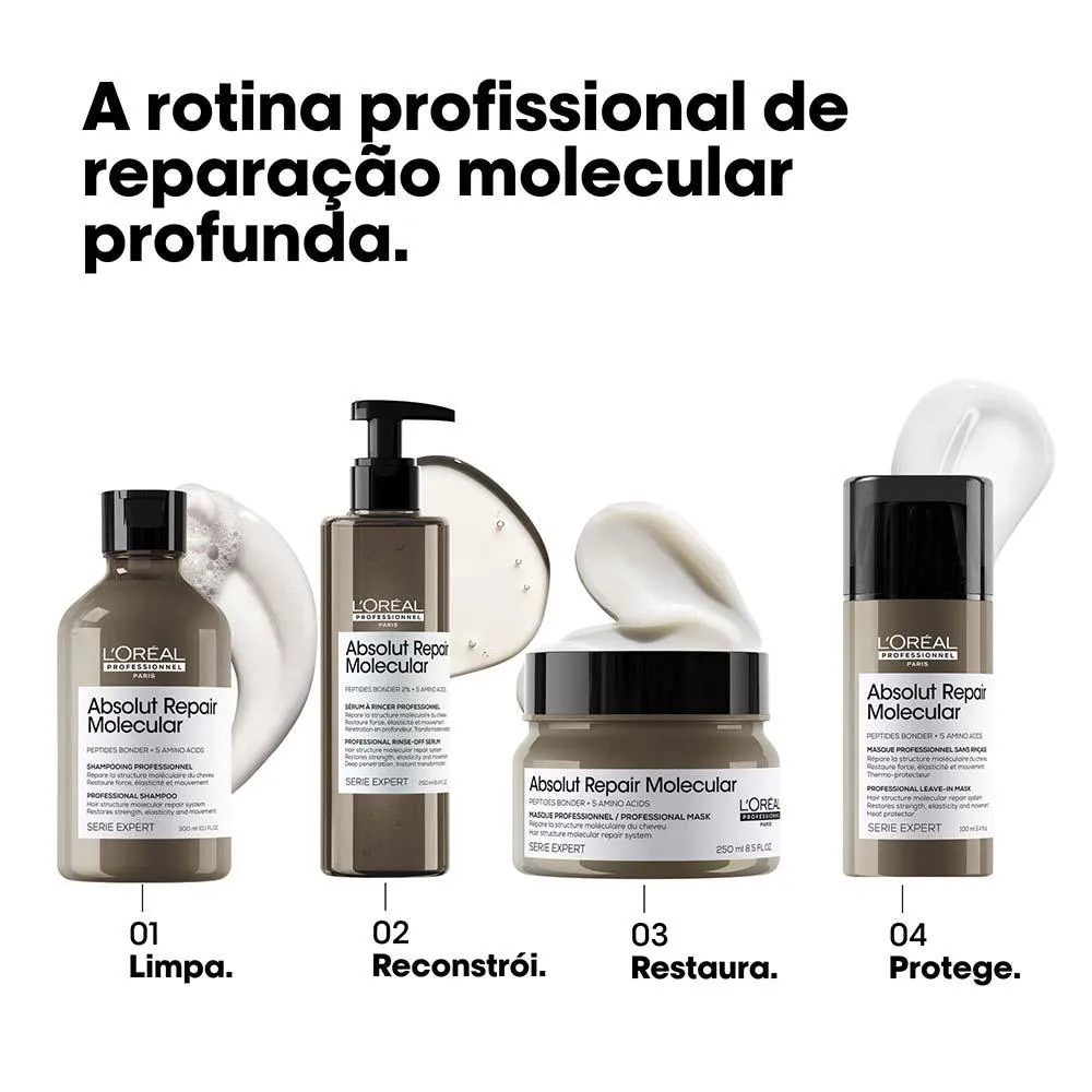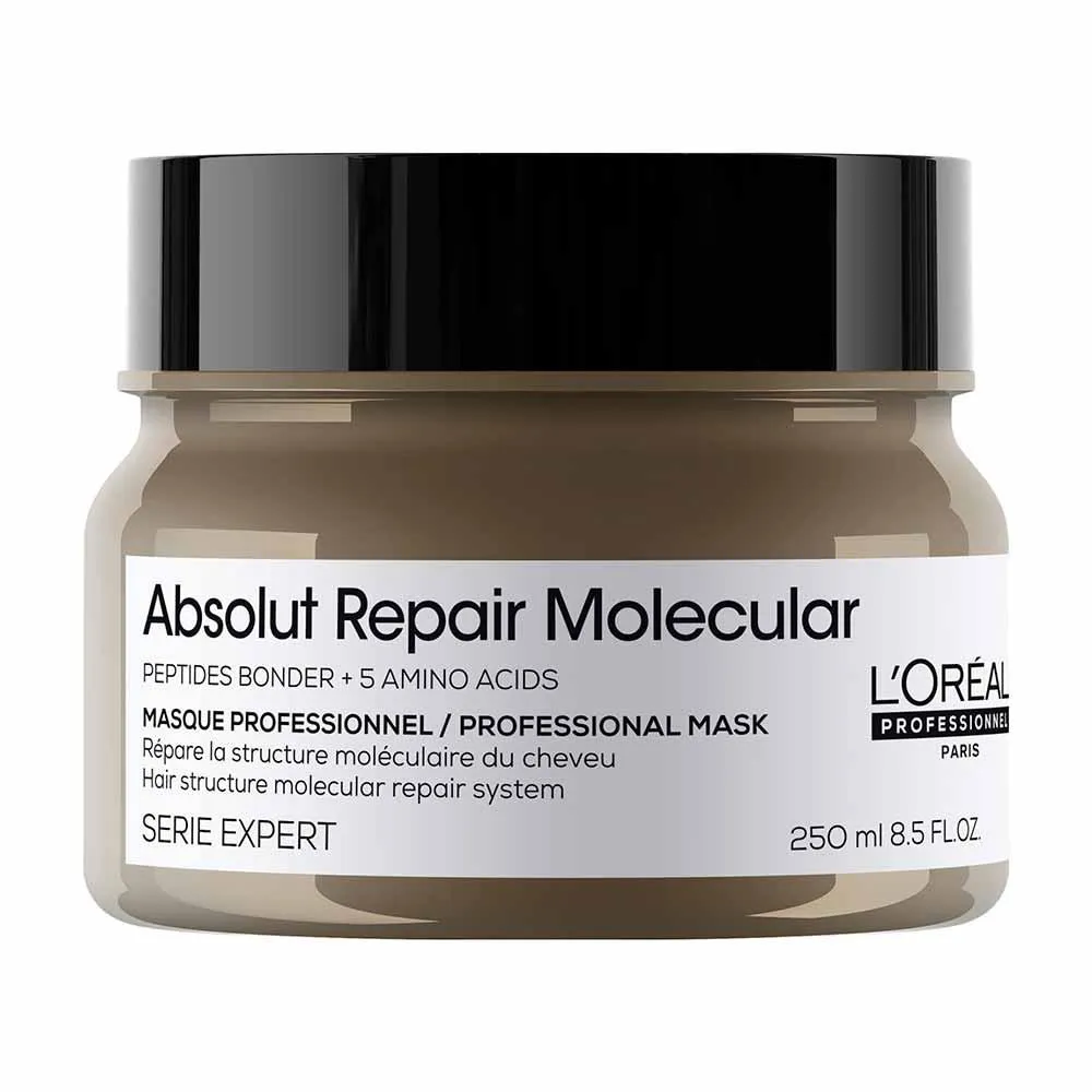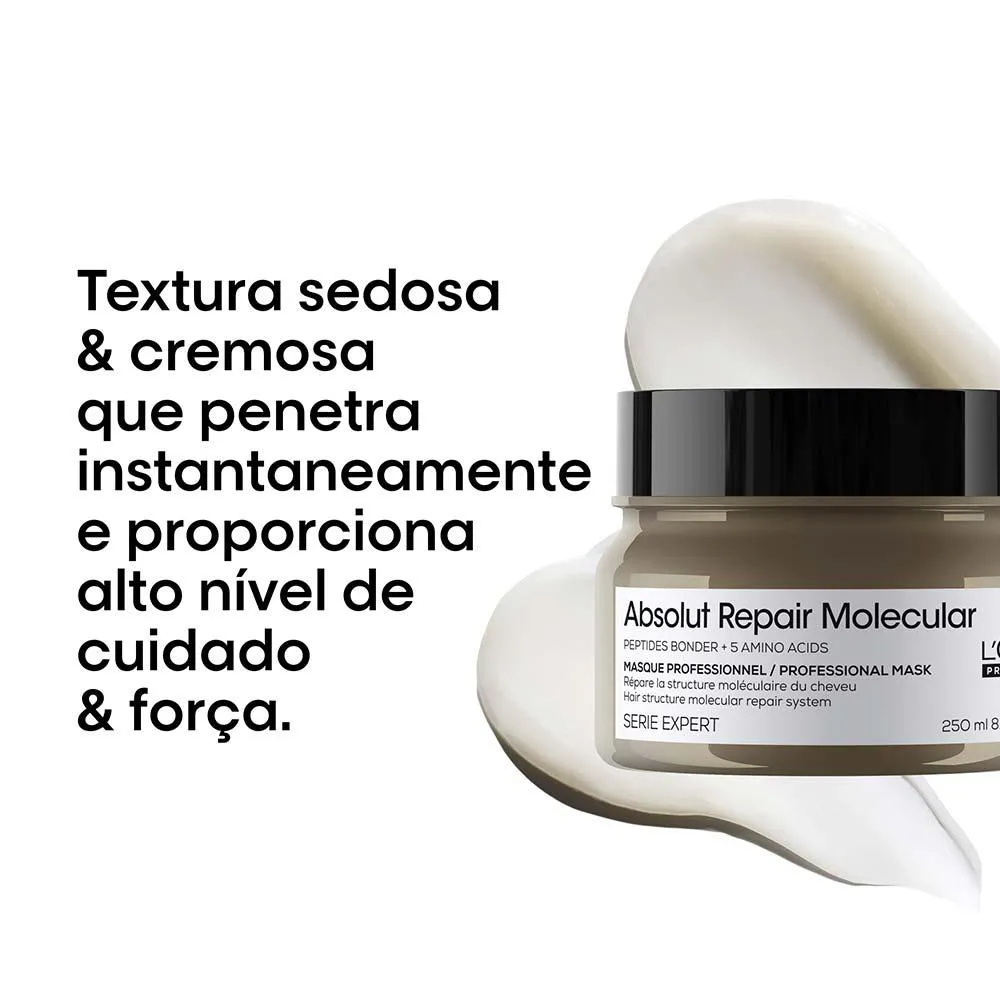 A Mascara Absolute Repair Molecular é mascara concentrada que restaura as camadas moleculares do cabelo, reparando 2 anos de danos.
