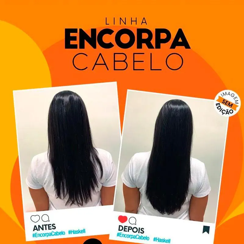 Após lavar os cabelos, aplique a máscara mecha a mecha, do comprimento às pontas. Massageie, deixe agir por 3 minutos e enxágue bem. Para potencializar o resultado, utilize touca térmica. A linha Encorpa Cabelo Haskell é a aliada perfeita para quem busca fios mais espessos, saudáveis e cheios de vida. Imagens meramente ilustrativas. Todas as informações são de responsabilidade do fabricante.