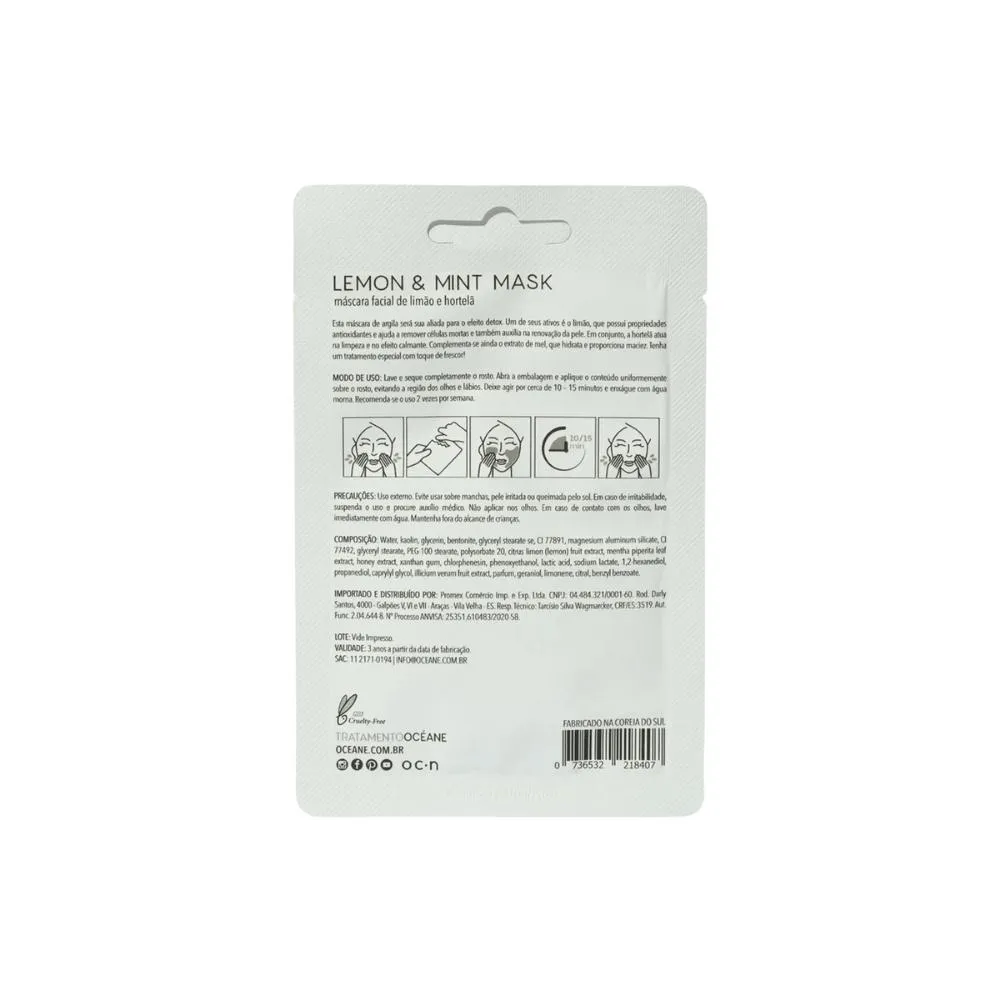 Além de promover um detox na pele, a Máscara Facial Océane com Limão e Hortelã possui propriedades antioxidantes e ajuda a remover células mortas.