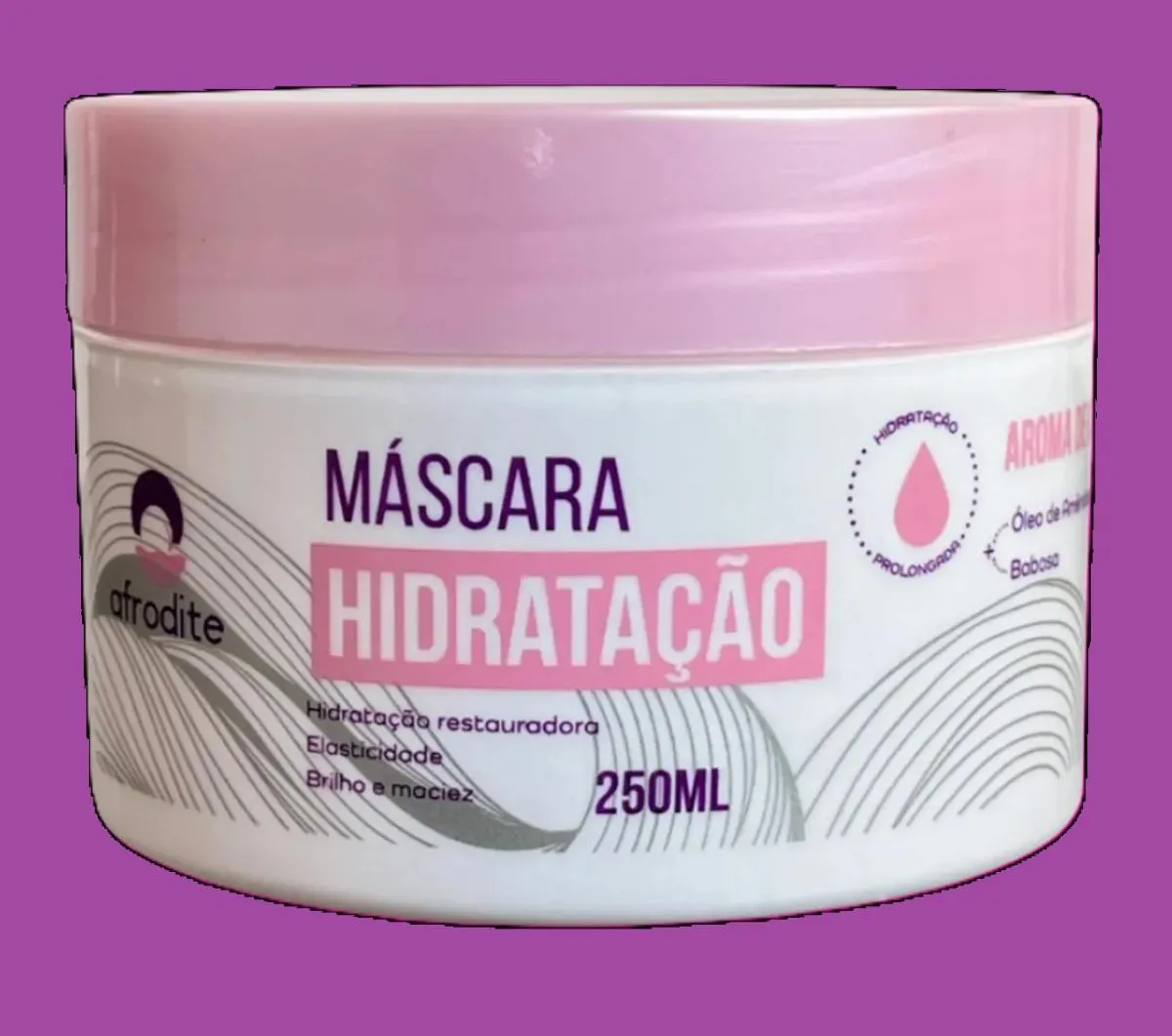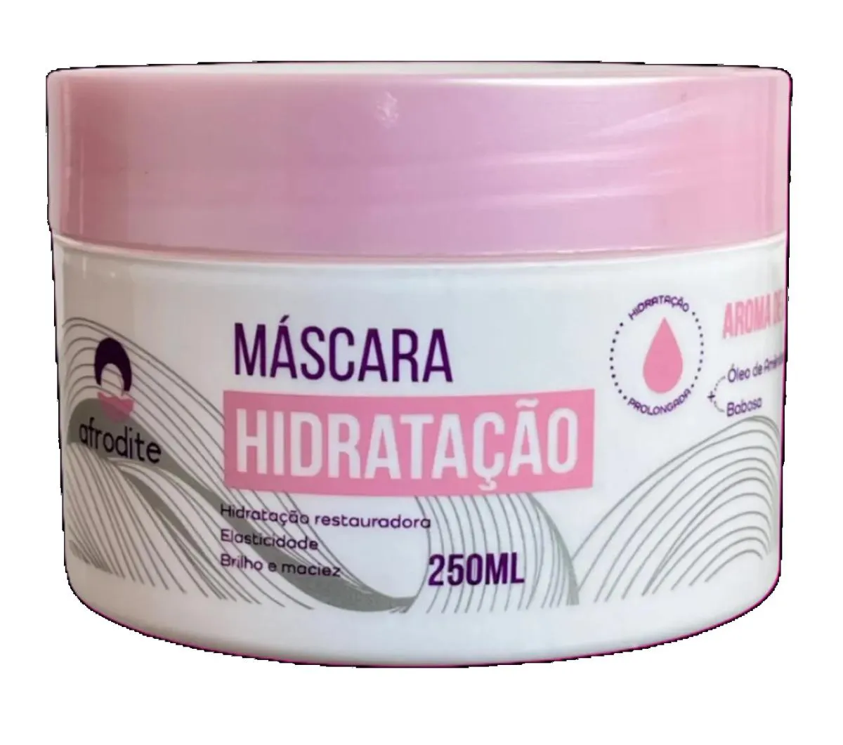 Máscara Hidratação - 250mL - Aroma de Chiclete - Afrodite Desenvolvida para cabelos ressecados e sem vida, a fórmula promove uma hidratação intensa, devolvendo suavidade, brilho e movimento natural aos fios. Enriquecida com óleo de amêndoas, que nutre e sela as cutículas, a máscara proporciona uma textura macia e sedosa, além de combater o frizz e as pontas ressecadas. O extrato de babosa (Aloe Vera) age profundamente na fibra capilar, revitalizando e mantendo a umidade natural dos fios, garantindo cabelos mais saudáveis e hidratados. Com a Máscara de Hidratação Afrodite, você terá fios leves, macios e com um brilho incomparável. Prepare-se para cabelos hidratados, sedosos e cheios de vida! Imagens Meramente Ilustrativas. Todas as Informações Divulgadas são de Responsabilidade Exclusiva do Fabricante/fornecedor.