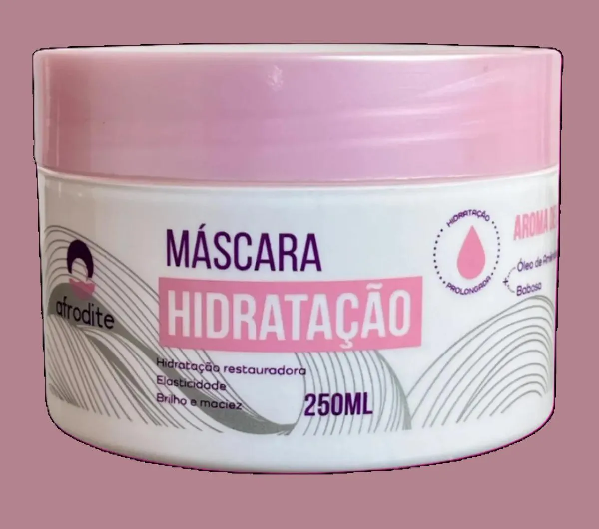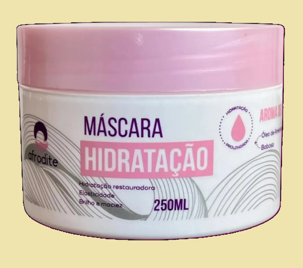 Máscara Hidratação - 250mL - Aroma de Chiclete - Afrodite Desenvolvida para cabelos ressecados e sem vida, a fórmula promove uma hidratação intensa, devolvendo suavidade, brilho e movimento natural aos fios. Enriquecida com óleo de amêndoas, que nutre e sela as cutículas, a máscara proporciona uma textura macia e sedosa, além de combater o frizz e as pontas ressecadas. O extrato de babosa (Aloe Vera) age profundamente na fibra capilar, revitalizando e mantendo a umidade natural dos fios, garantindo cabelos mais saudáveis e hidratados. Com a Máscara de Hidratação Afrodite, você terá fios leves, macios e com um brilho incomparável. Prepare-se para cabelos hidratados, sedosos e cheios de vida! Imagens Meramente Ilustrativas. Todas as Informações Divulgadas são de Responsabilidade Exclusiva do Fabricante/fornecedor.