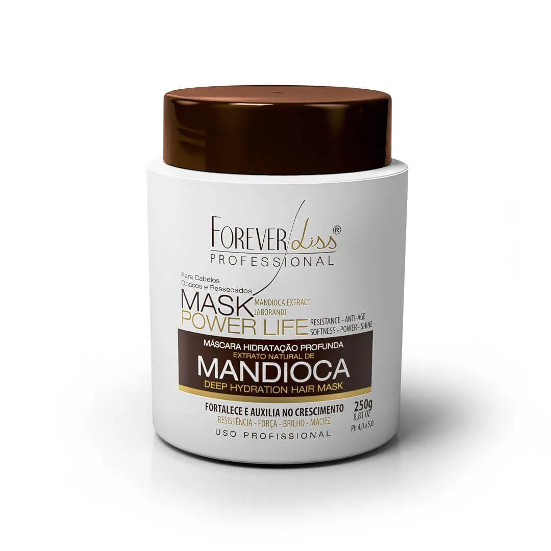 Com a Máscara hidratante de Mandioca Power Life, a Forever Liss obteve da natureza vitaminas e minerais poderosos em alta concentração, com Extrato de Mandioca e Jaborandi que promove hidratação profunda para renovar completamente a estrutura de cabelos ressecados e frágeis. A cada uso, tornará os fios mais resistentes, macios e brilhantes, além de promover um crescimento acelerado e saudável. Alto poder de condicionamento e melhor desembaraço além de redução da quebra, controle do frizz e brilho aos cabelos, deixando-os saudáveis e bonitos.