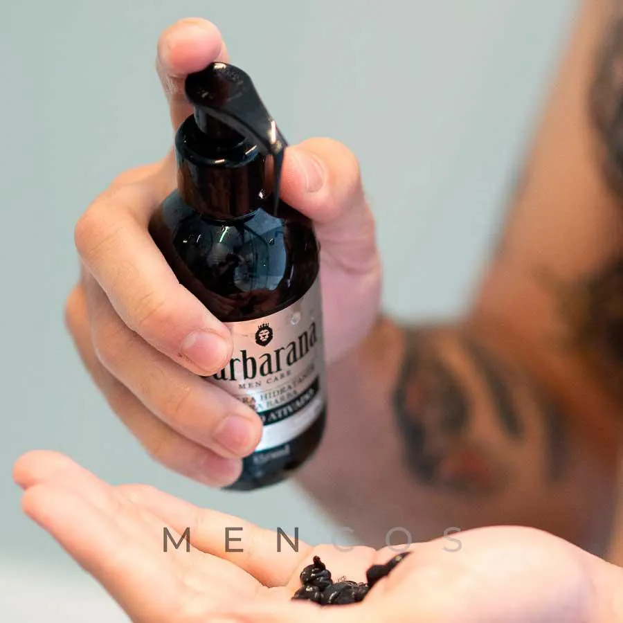 Carvão Ativado - Possui ação detox que age tanto na pele do rosto quanto nos fios, remove impurezas, combate a oleosidade e auxilia no crescimento e regeneração dos fios da barba. Não deixa resíduos, nem toque pegajoso.