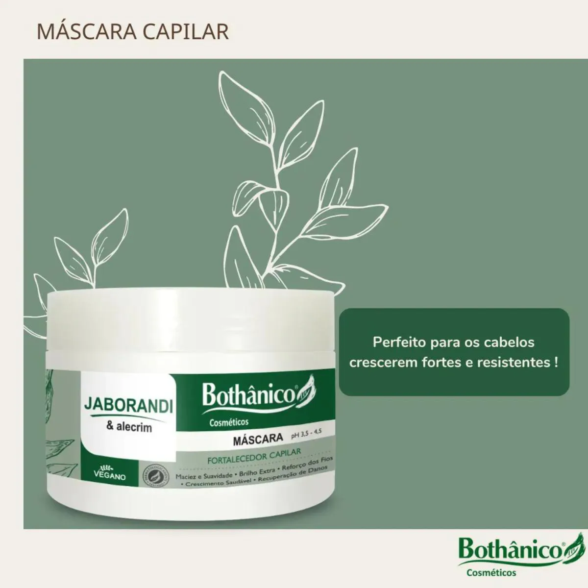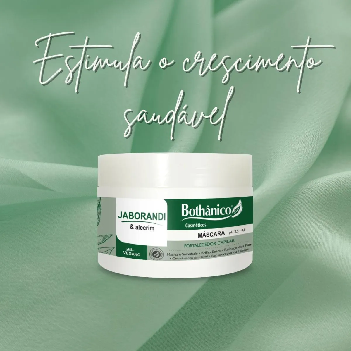 A Máscara Jaborandi Bothanico é especialmente formulada para fortalecer os cabelos e estimular o crescimento saudável. Rica em ativos naturais, promove hidratação intensa, reduz a queda e deixa os fios mais resistentes, macios e com brilho natural.