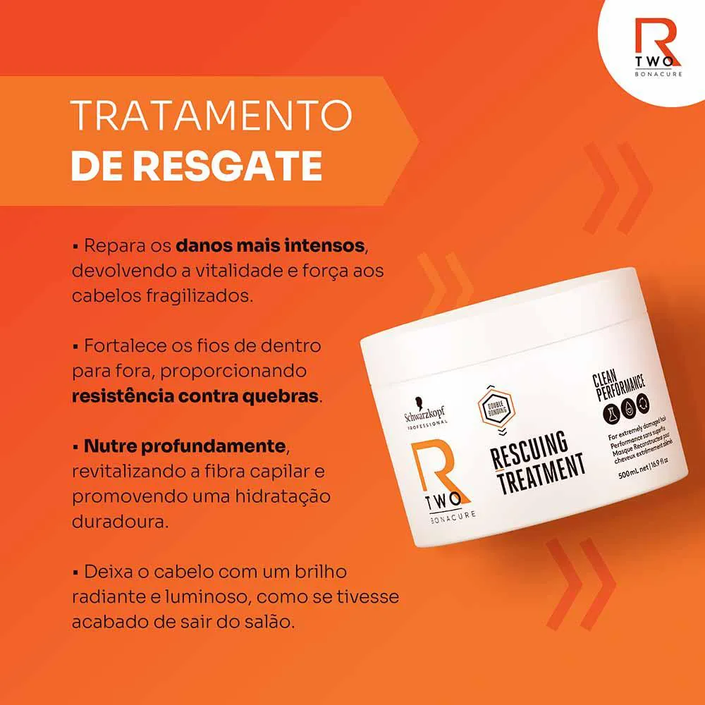 A Máscara Schwarzkopf Professional R-Two é formulada com poderosos ingredientes naturais que atuam na reparação dos fios. Sua fórmula rica em nutrientes essenciais garante uma hidratação profunda, promovendo a regeneração capilar e a proteção contra futuros danos.