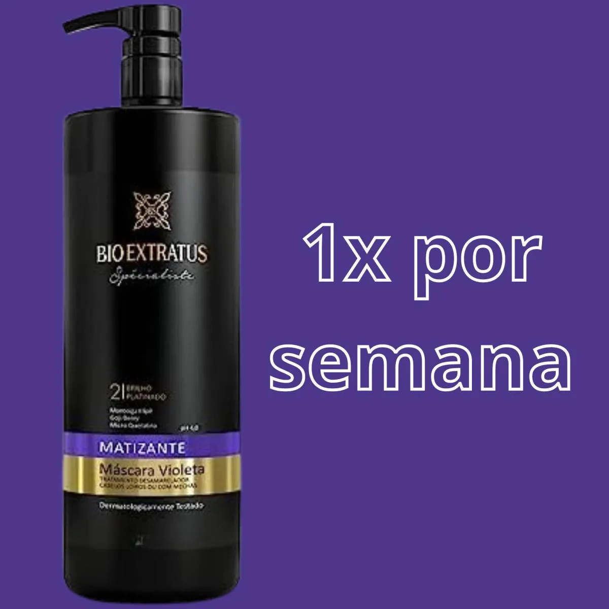 Modo de usar: após lavar o cabelo, aplique a máscara massageando mecha a mecha. Para intensificar o tratamento, use touca de hidratação. Deixe agir por 10 minutos. Enxágue bem, até sair toda a cor roxa do produto.