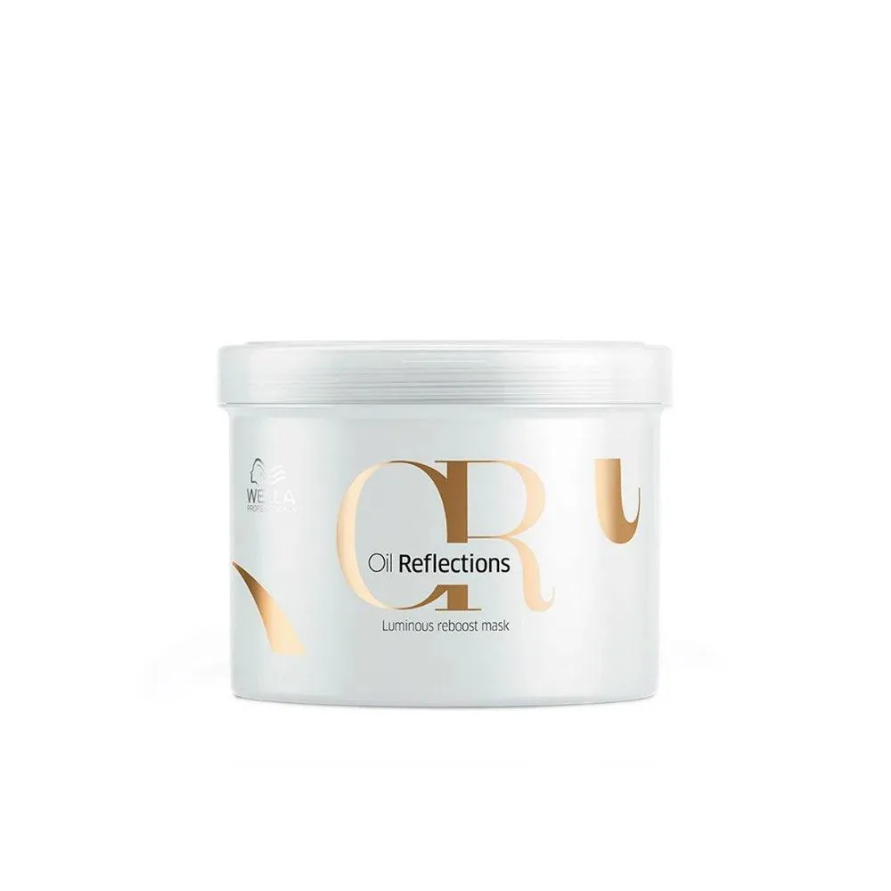 Wella Professionals Oil Reflections Luminous Reboost Máscara nutre e hidrata profundamente e promove a menor perda de água dos fios. Ela revitaliza as fibras capilares através de uma fórmula nutritiva para que fiquem extremamente macias e com alto brilho.Óleo de Semente de Camélia: cicatrização e selagem do fio.Extrato de Chá Branco: antioxidante natural.Fragrância: no topo Romã, Pêssego e Flor de Baunilha; no corpo Peônia, Coco e Jasmim; no fundo Almíscar, Baunilha e Cedro. Modo de uso: Aplique a máscara nos fios e enluve. Deixe agir de 15 a 20 minutos e enxague.#html-body [data-pb-style="646BA6620F749"]{justify-content: flex-start; display: flex; flex-direction: column; background-position: left top; background-size: cover; background-repeat: no-repeat; background-attachment: scroll; border-style: none; border-width: 1px; border-radius: 0px; margin: 0px 0px 10px; padding: 10px;}#html-body [data-pb-style="646BA6620F75E"]{border-style: none; border-width: 1px; border-radius: 0px; margin: 0px; padding: 0px;}