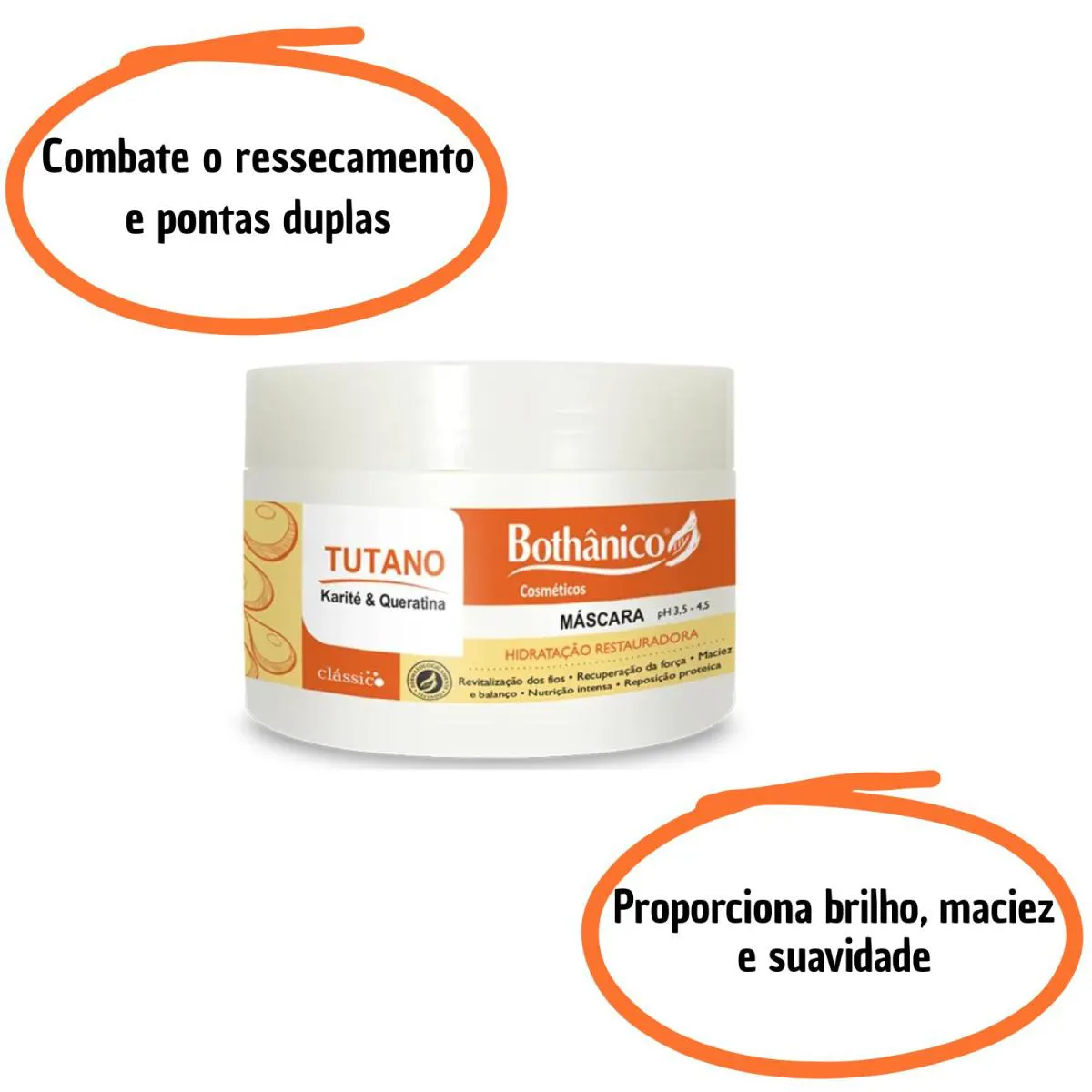 Após lavar os cabelos, aplique a máscara nos fios úmidos, do comprimento às pontas. Massageie suavemente, deixe agir por 5 a 10 minutos e enxágue bem. Para melhores resultados, utilize a linha Tutano Karité Bothanico regularmente. Conteúdo da embalagem: