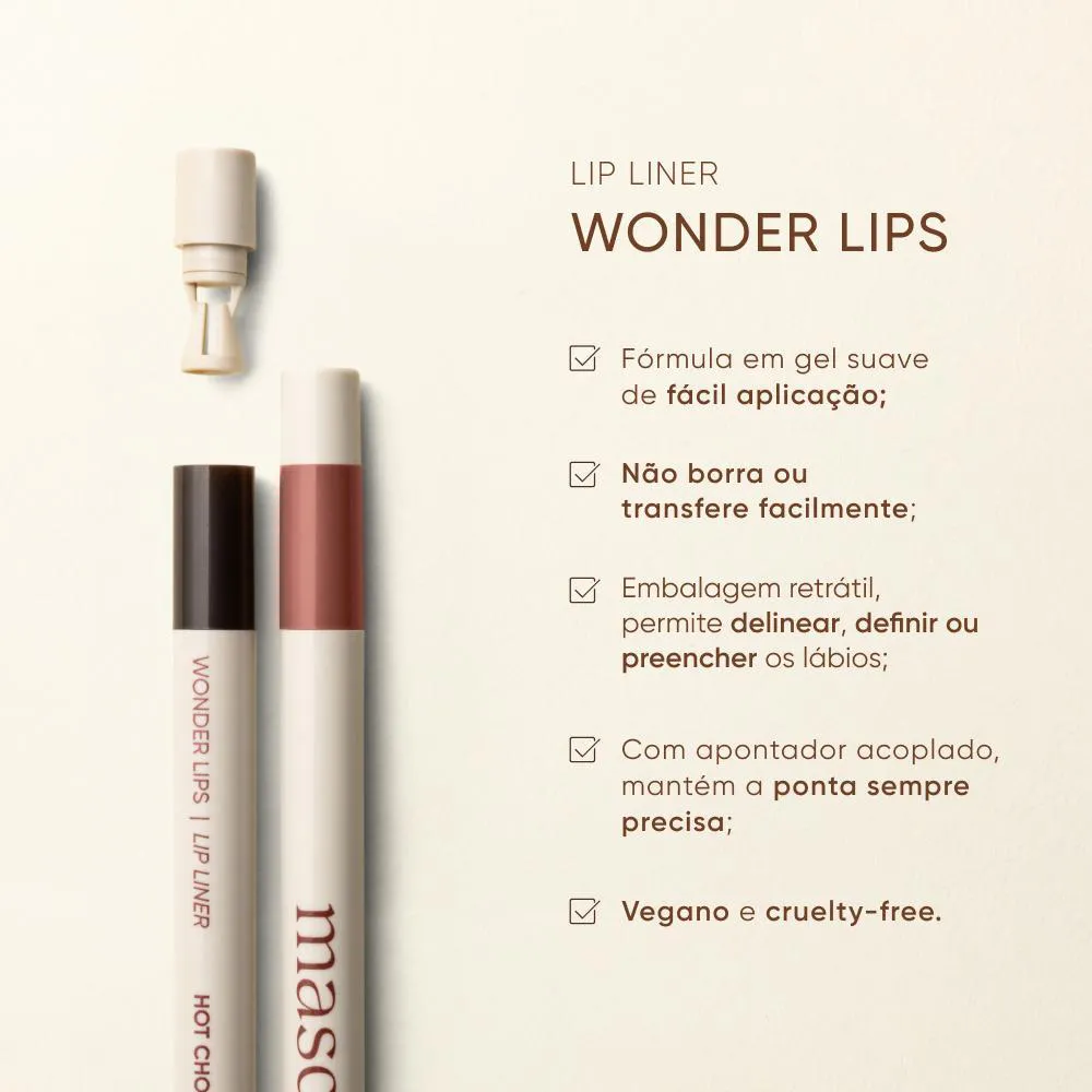 - Versátil: delineia, define e preenche os lábios.