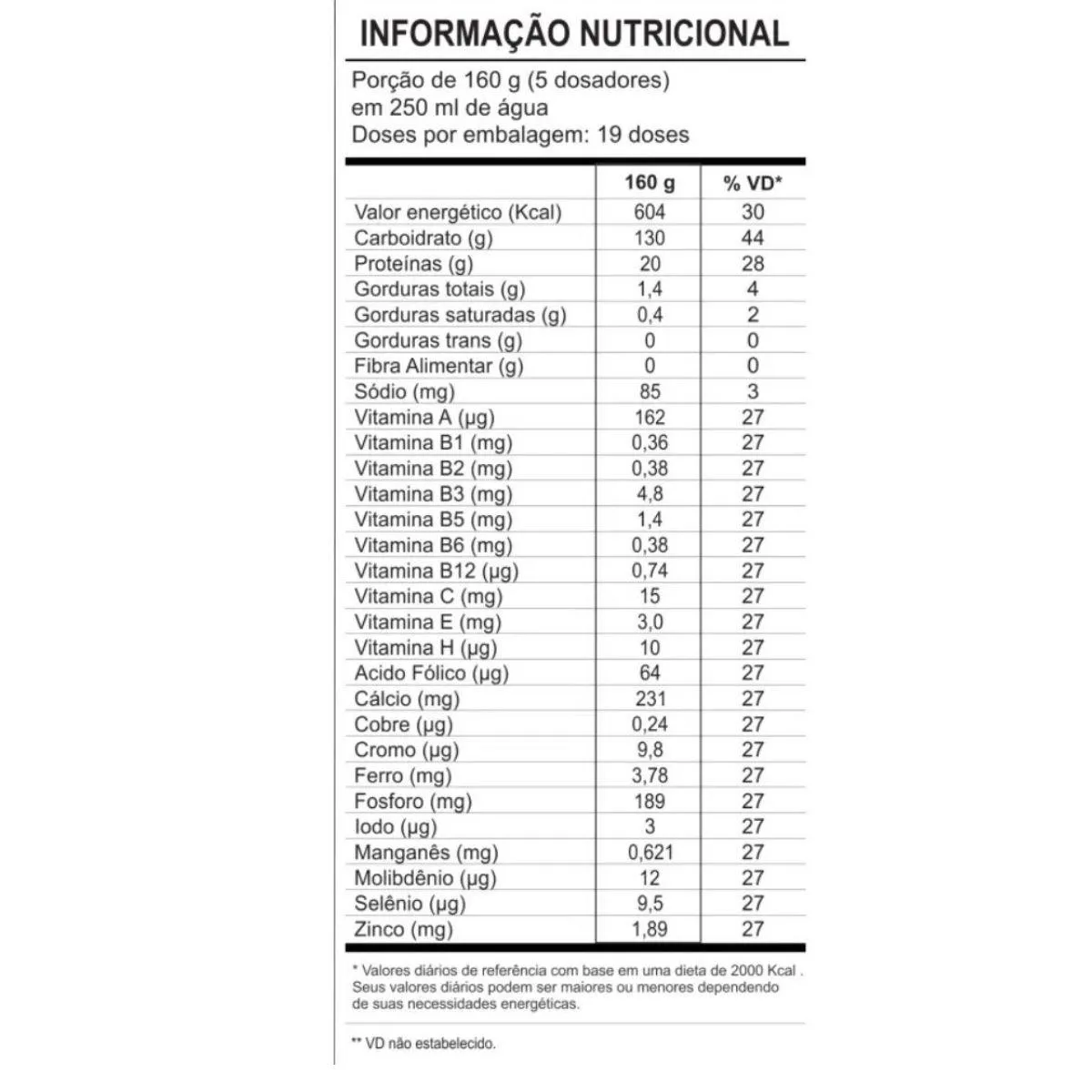 - Fórmula rica em proteínas de alto valor biológico para crescimento muscular.