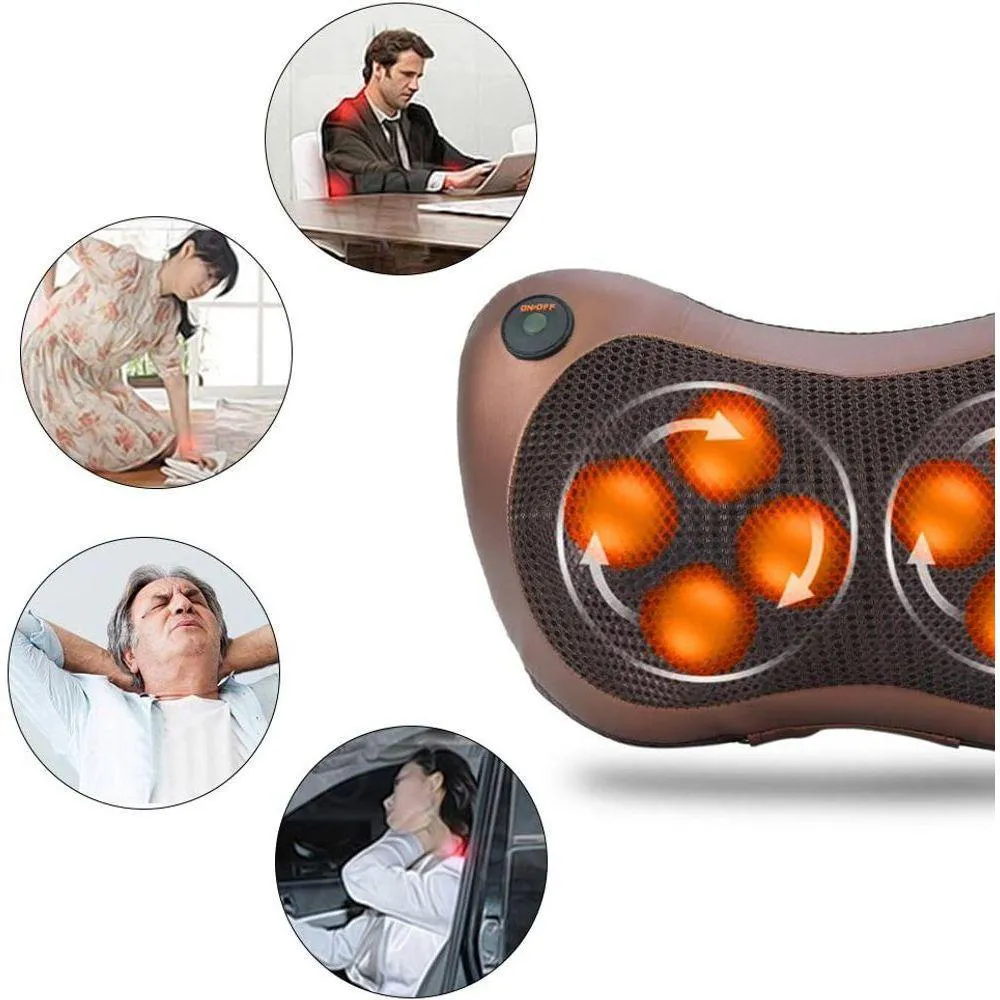 Possui 4 Esferas de cada lado, Total 8 Esferas Nosso Travesseiro Massageador Shiatsu é seguro e pode ser sem nenhum receio. É Equipado com dispositivo de proteção contra o superaquecimento e programado com desligamento automático Possui botão de ajuste rotação oferecendo dois sentidos diferentes, proporcionando dessa forma maior eficiência e melhores resultadosVem equipado com 4 nódulos rotativos de cada lado e com isso massageia uma área maior do corpoSão produzidos com material de alta qualidade que conferem durabilidade e uma sensação confortável e suave ao toque, além de serem e fáceis de limpar O design ergonômico ultra fino permite um encaixe perfeito e diversas áreas como pescoço, ombros, costas, abdômen, braços, pés, pernas dentre outrosIndicações: Região Lombar e Cervical Relaxamento Alívio da tensãoDores muscularesMelhora da circulação sanguíneaAlívio da fadigaMassagem no pescoçoMassagem de cinturaMassagem abdominalMassagem na coxaMassagem no braçoMassagem nas pernasMassagem de pésPode ser utilizado no conforto do seu sofá, escritório e até inclusive no seu carro enquanto dirige, o produto vem incluído adaptador de energia, para carro, e também possui cinta para fixar no apoio da cadeira do seu carro. Eficiente para Fisoterapia .