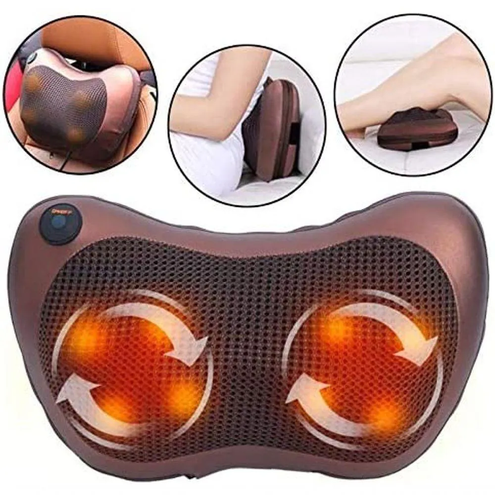 Possui 4 Esferas de cada lado, Total 8 Esferas Nosso Travesseiro Massageador Shiatsu é seguro e pode ser utilizado sem nenhum receio. É Equipado com dispositivo de proteção contra o superaquecimento e programado com desligamento automático Possui botão de ajuste rotação oferecendo dois sentidos diferentes, proporcionando dessa forma maior eficiência e melhores resultadosVem equipado com 4 nódulos rotativos de cada lado e com isso massageia uma área maior do corpoSão produzidos com material de alta qualidade que conferem durabilidade e uma sensação confortável e suave ao toque, além de serem e fáceis de limpar O design ergonômico ultra fino permite um encaixe perfeito e diversas áreas como pescoço, ombros, costas, abdômen, braços, pés, pernas dentre outrosIndicações: Região Lombar e Cervical Relaxamento Alívio da tensãoDores muscularesMelhora da circulação sanguíneaAlívio da fadigaMassagem no pescoçoMassagem de cinturaMassagem abdominalMassagem na coxaMassagem no braçoMassagem nas pernasMassagem de pésPode ser utilizado no conforto do seu sofá, escritório e até inclusive no seu carro enquanto dirige, o produto vem incluído adaptador de energia, para carro, e também possui cinta para fixar no apoio da cadeira do seu carro. Eficiente para Fisoterapia .