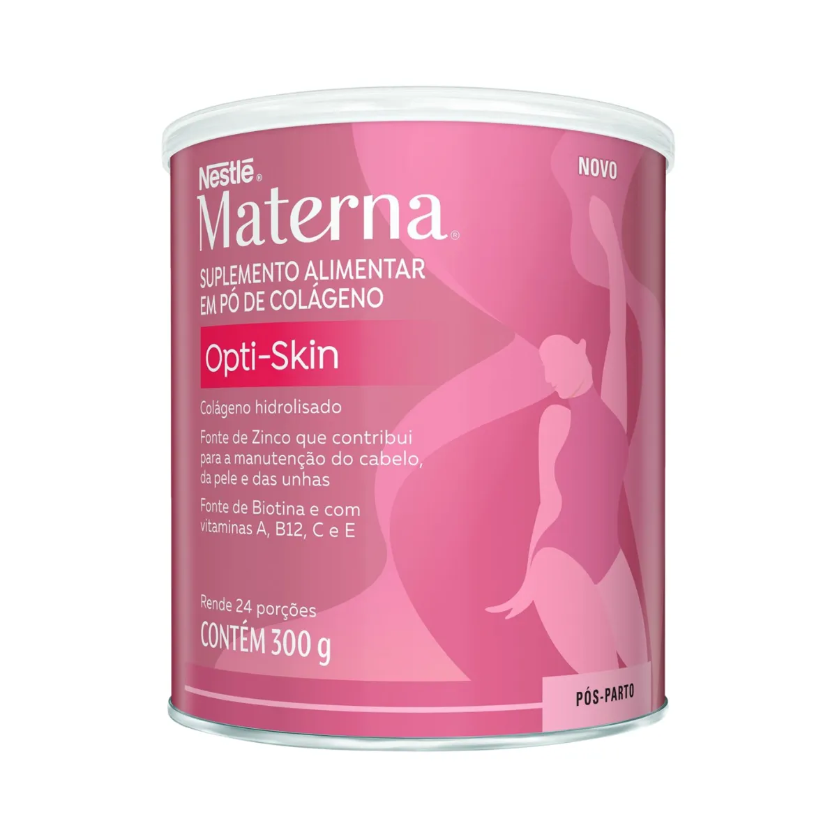 Suplemento Alimentar Nestlé Materna Opti-Skin é um suplemento desenvolvido especialmente para atender às necessidades da mulher no período pós-parto. Sua fórmula é rica em nutrientes que contribuem para a manutenção da saúde dos cabelos, pele e unhas, oferecendo suporte nutricional essencial nessa fase. O produto é sem sabor, o que permite maior versatilidade no consumo, podendo ser adicionado a diferentes alimentos ou bebidas.