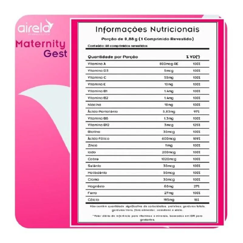 Maternity Gest Suplemento para Gestantes com 60 Comprimidos Airela