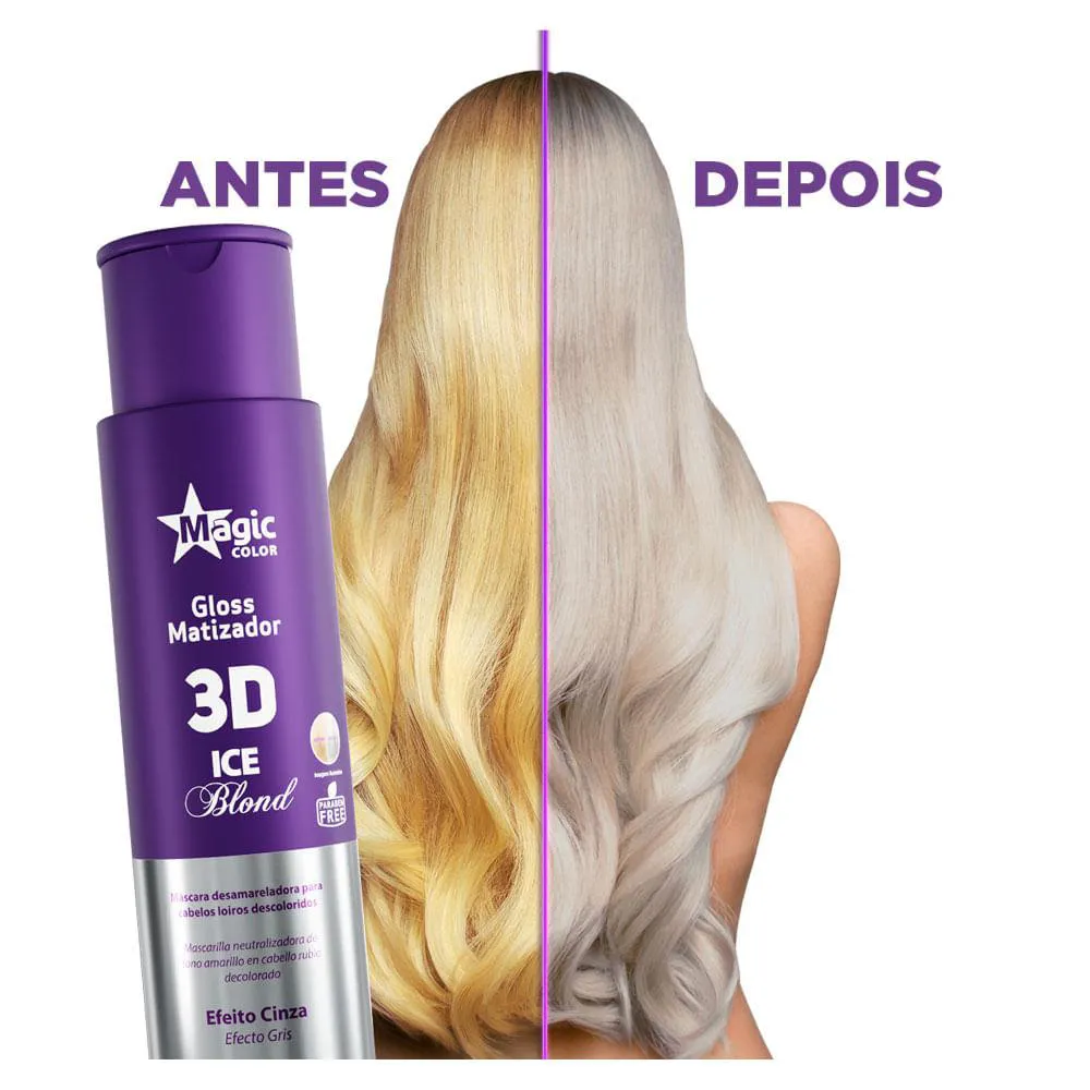 Máscara capilar para desamarelar cabelos loiros descoloridos, brancos ou grisalhos.