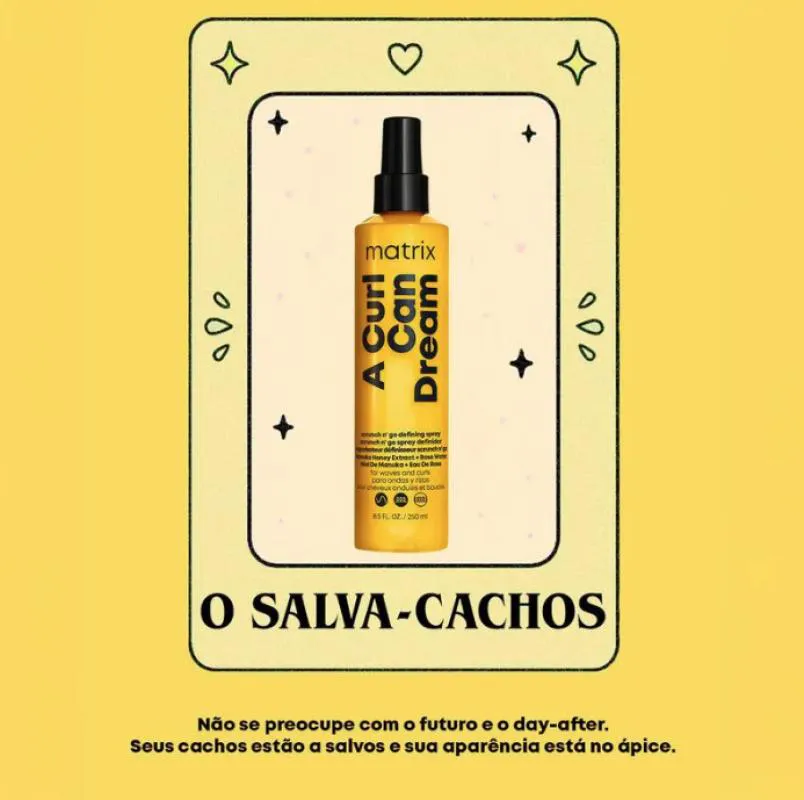 Matrix A Curl Can Dream - Definição e Controle do frizz Valorize a beleza natural dos cabelos ondulados e cacheados com A Curl Can Dream de Matrix. Proporciona alta definição e controle do frizz por até 48 horas. Com extrato de mel de manuka e água de rosas, hidrata sem pesar, deixando os fios flexíveis, luminosos e com movimento solto. Transforme sua finalização diária em um cuidado profissional para cachos impecáveis. Conselho de AplicaçãoAplique uniformemente uma quantidade suficiente do produto, sobre toda extensão dos fios ainda molhados. Não enxágue.