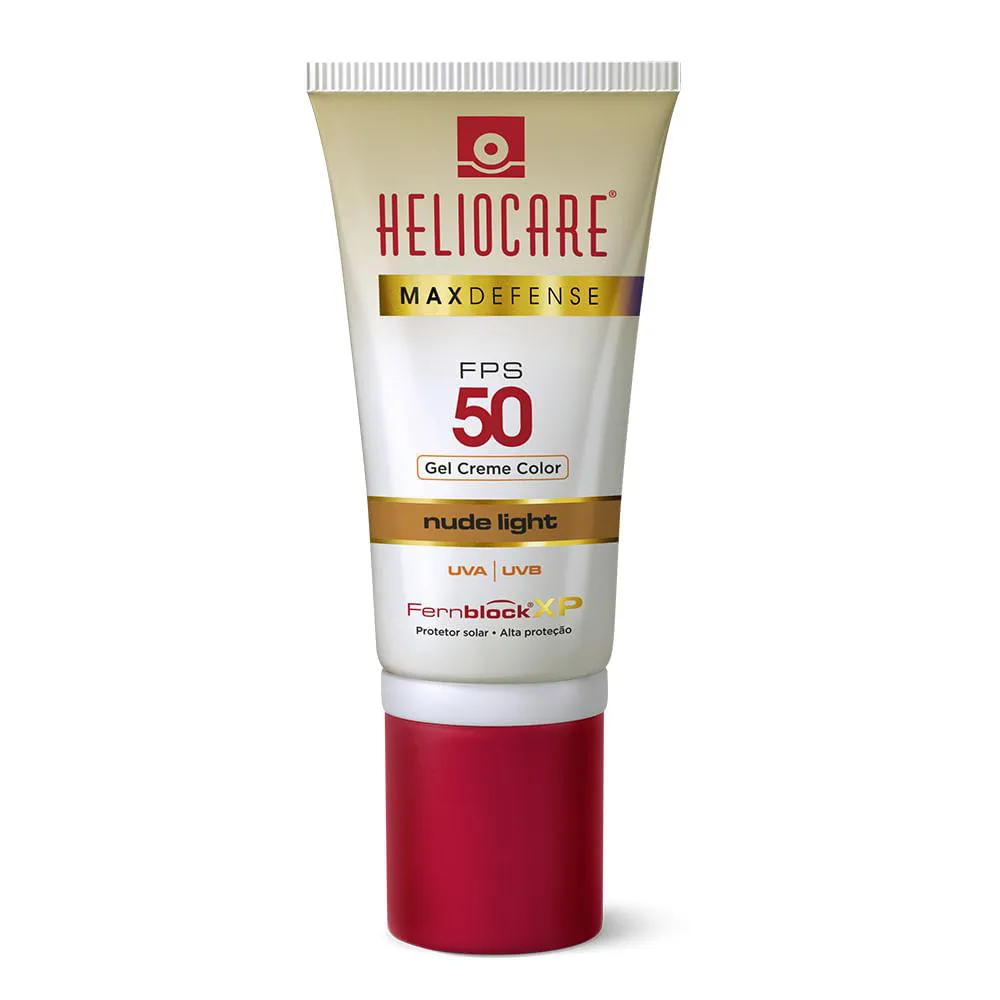 Heliocare Max Defense Gel Creme Color FPS 50 é um protetor solar diário que protege contra os efeitos nocivos do sol (fotoenvelhecimento e pigmentação cutânea), e ajuda a uniformizar a tonalidade da pele, pois mascara leves imperfeições. Sua cor promove um efeito bronzeado na pele.Heliocare Max Defense Gel Creme Color protetor solar em gel com cor e apresenta comprovada ação fotoimunoprotetora, fortalecendo defesas da pele, protegendo dos possíveis malefícios do sol e promovendo forte ação antioxidante. O protetor solar Heliocare Max Defense Gel Color possui algumas combinações para benefícios da sua pele, com filtros fotoestáveis e a exclusiva tecnologia Fernblock XP (rico em ácido Ferúlico, ácido Caféico e Chá verde), com imunoprotetor de origem natural proveniente do Extrato de Polypodium leucotomos.