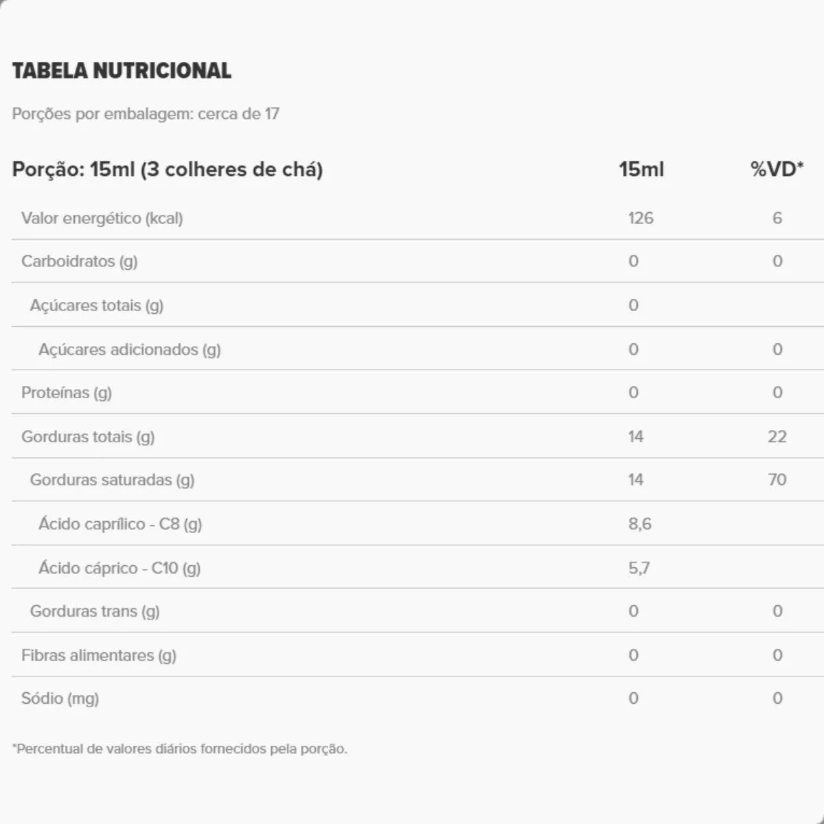 - Embalagem de vidro escuro que preserva a qualidade do óleo MCT.