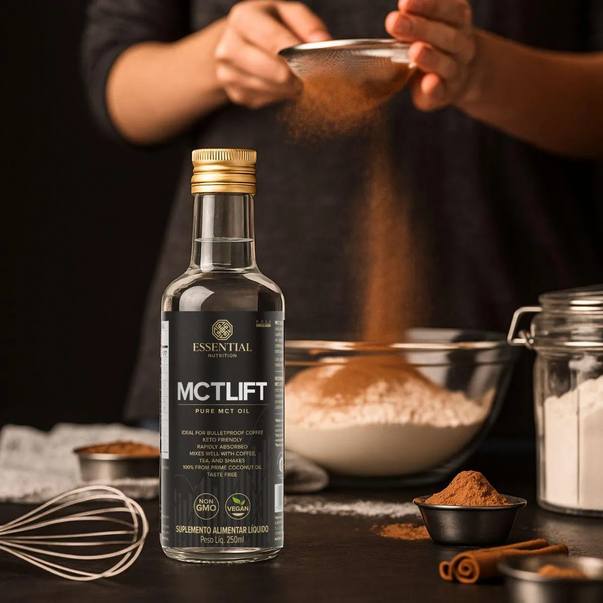 O MCT Lift é um óleo de triglicerídeos de cadeia média (MCT) derivado do óleo de coco, produzido em uma embalagem de vidro escuro de 250 ml. Trata-se de um suplemento líquido puro, sem aditivos, glúten, lactose ou corantes, composto por óleo de coco fracionado rico em ácidos caprílico e cáprico. Sua fórmula destaca-se pela pureza e simplicidade.