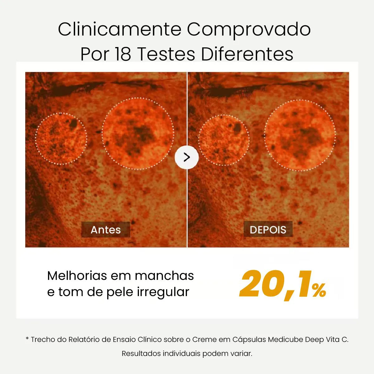 O creme facial Deep Vita C Capsule Cream é um tratamento avançado desenvolvido para reduzir manchas, uniformizar o tom e aumentar a luminosidade da pele. Sua fórmula inovadora possui textura dupla — cápsulas de vitamina c pura e um gel translúcido antioxidante — que se misturam no momento do uso, garantindo máxima potência, frescor e estabilidade dos ativos. Ideal para quem busca uma pele mais radiante, hidratada e com tom visivelmente mais uniforme.