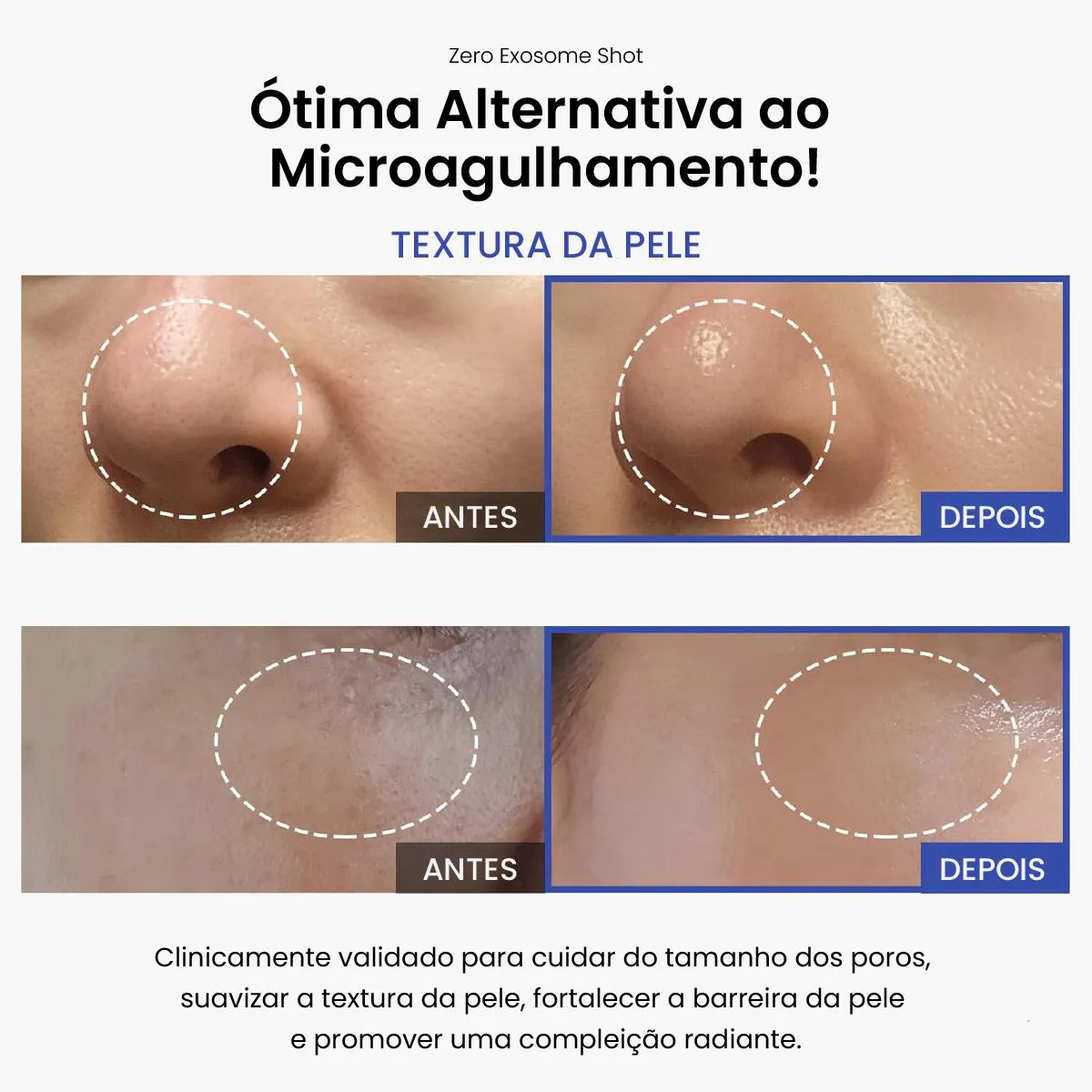 - Após a limpeza, aplique o Zero Exosome Shot 2000 na área desejada, como regiões com textura irregular e poros dilatados.