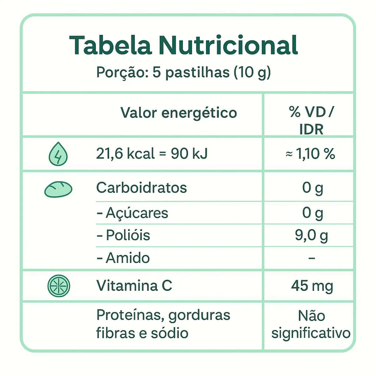 - Praticidade de consumo com formato de pastilhas para uso diário.