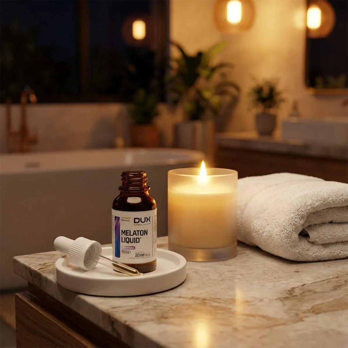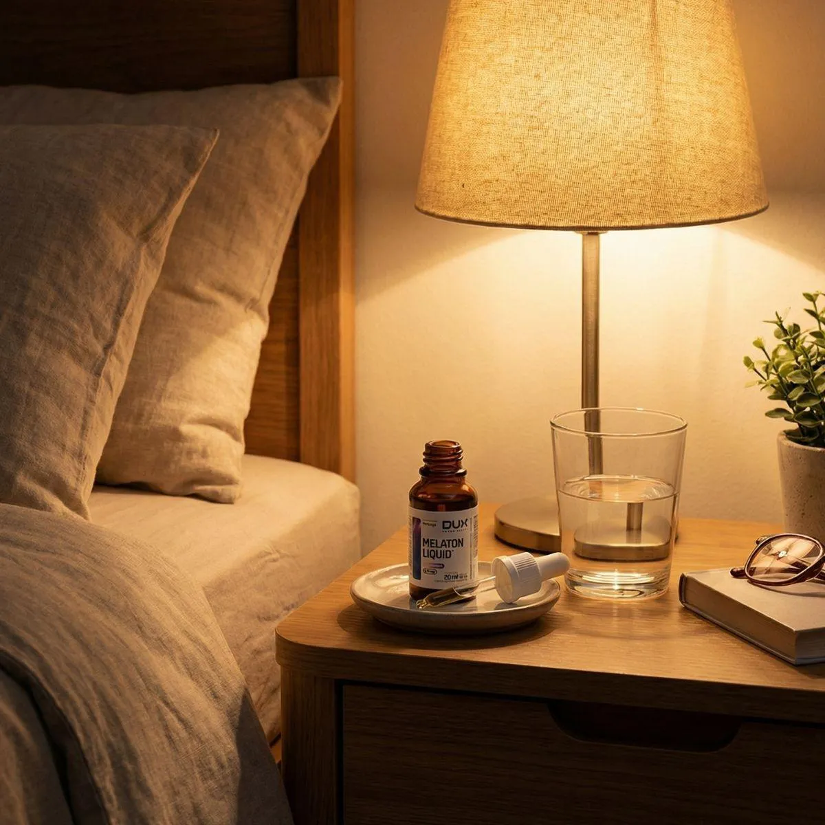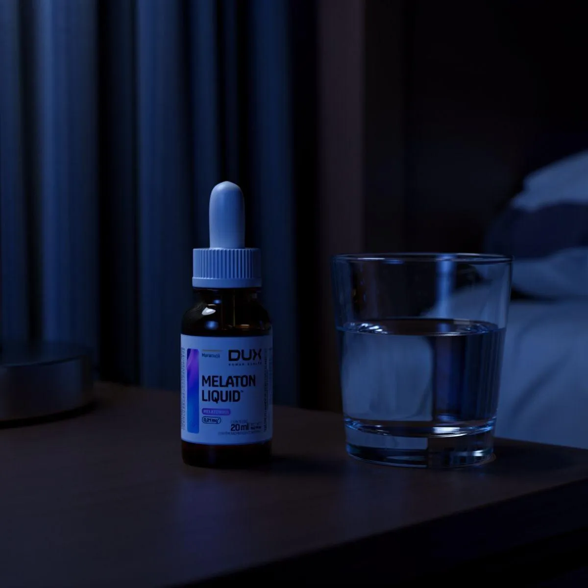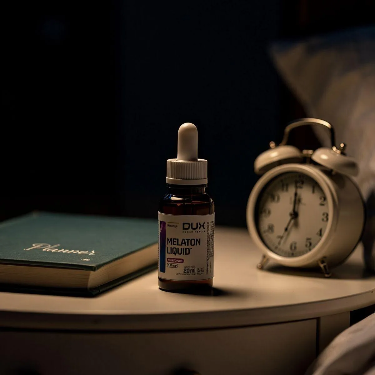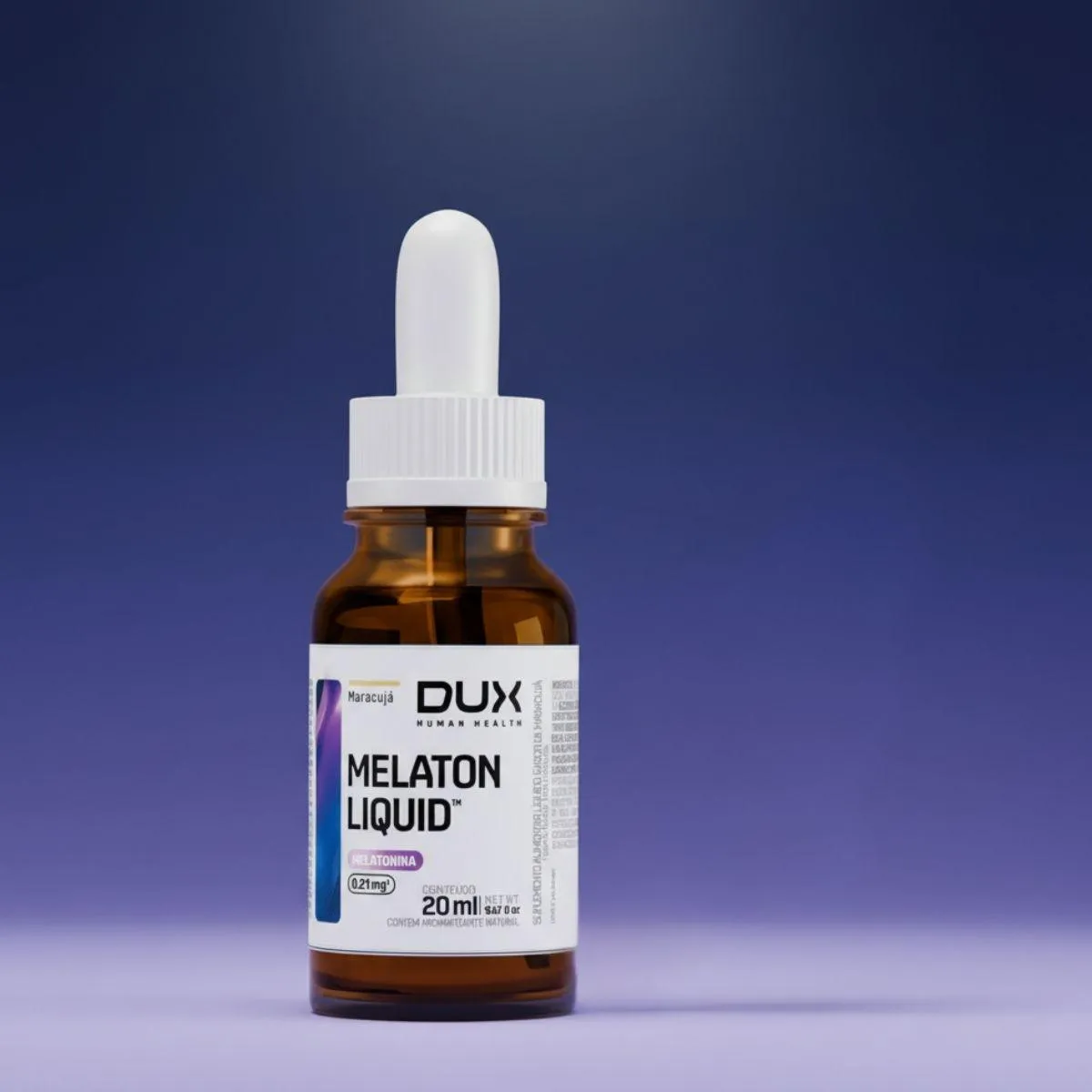 Melaton Liquid da Dux é um suplemento em gotas com microdose de melatonina, concebido para auxiliar na regulação do ciclo sono‑vigília. Cada gota contém 0,21 mg de melatonina e a embalagem de 20 ml acompanha conta‑gotas para dosagem precisa. A base líquida facilita a absorção e dispensa glúten e lactose.