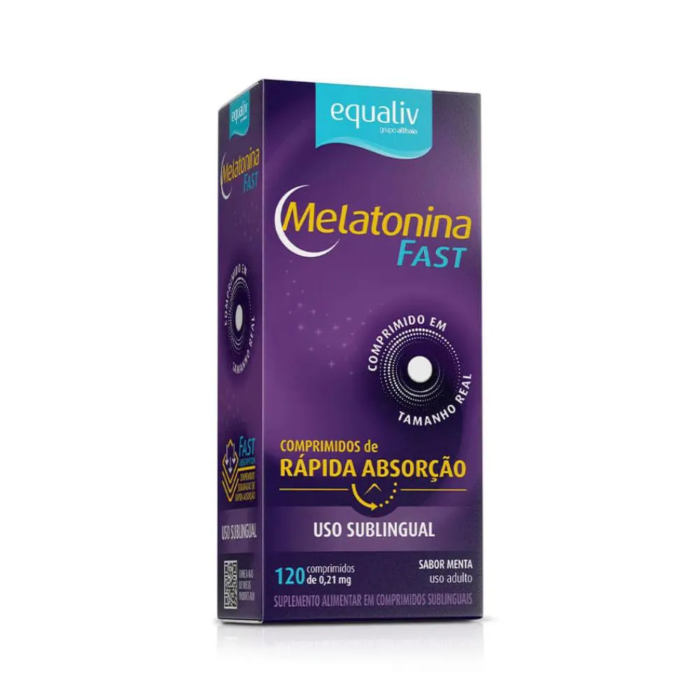 A Melatonina fast no sabor menta Equaliv, é um suplemento alimentar que fornece 0,21 mg de melatonina por comprimido. Possui uma tecnologia de rápida absorção, deve ser consumida sublingual. Desenvolvido com melatonina de alta qualidade, com apresentação em comprimidos, é de fácil transporte e consumo.