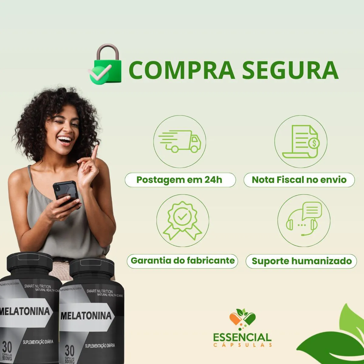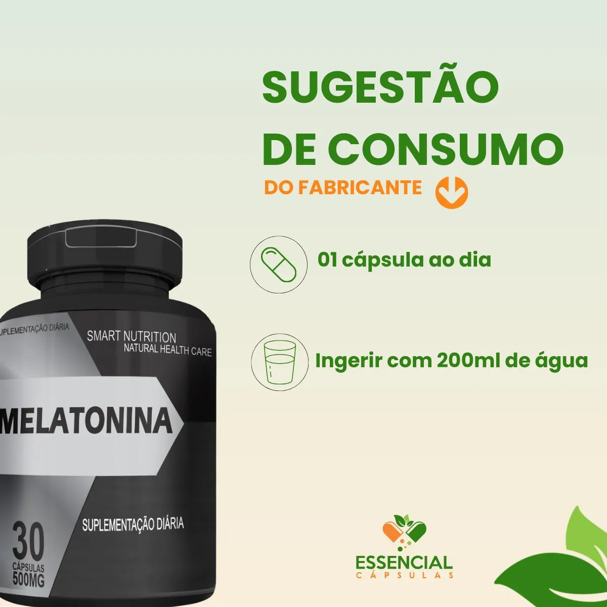 A Melatonina é um suplemento alimentar natural composto por melatonina e excipientes, apresentado em um pote preto com 30 cápsulas. É um produto desenvolvido para auxiliar em rotinas de descanso e relaxamento, fornecendo nutrientes complementares à alimentação.