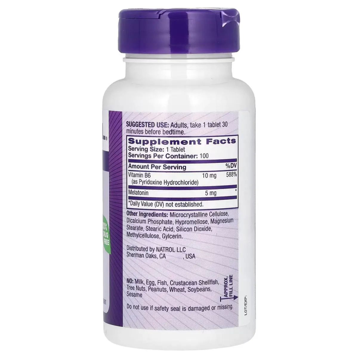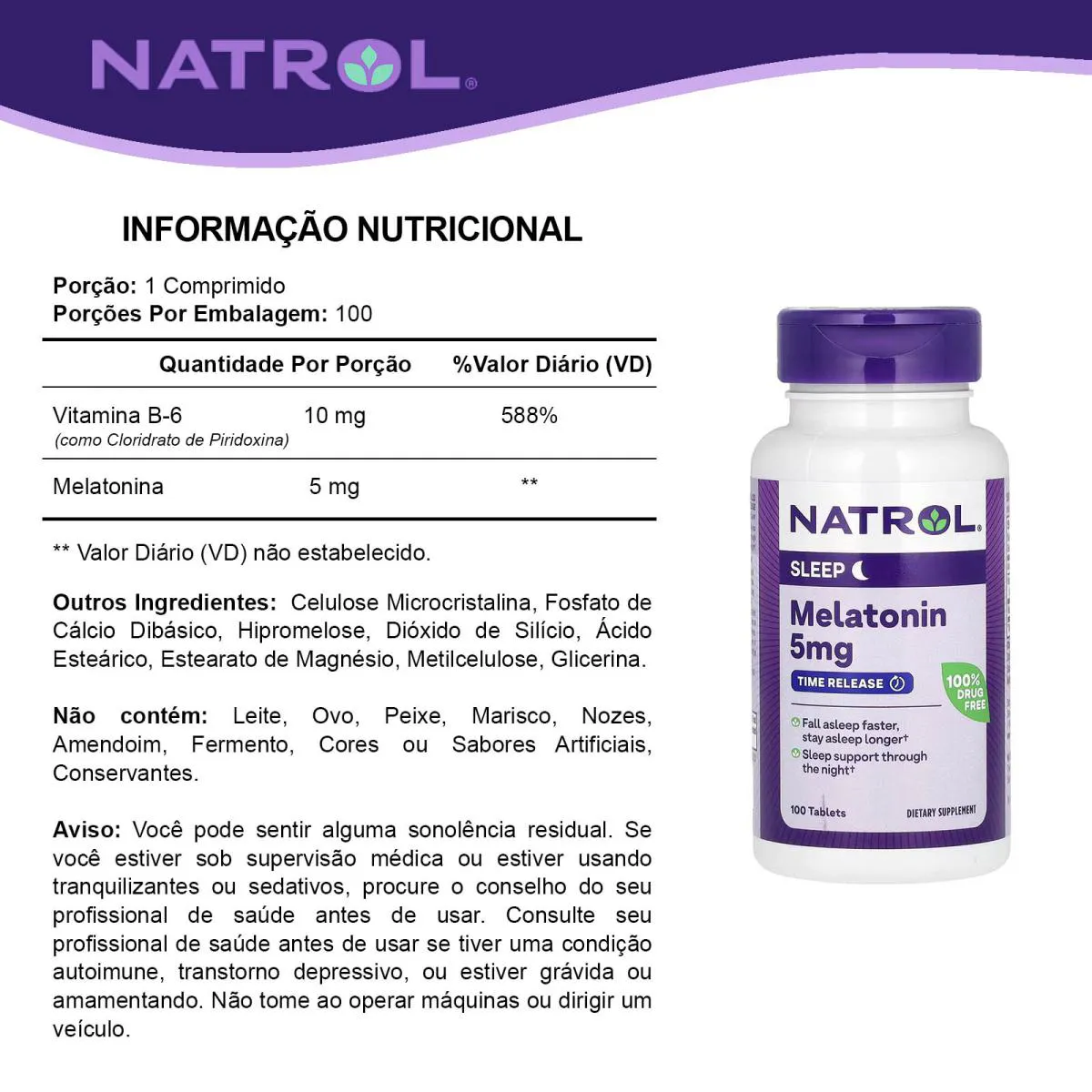 MELATONINA VITAMINA 5 MG TIME RELEASE 100 TABLETES NATROL - IMPORTADO , PRONTA ENTREGA