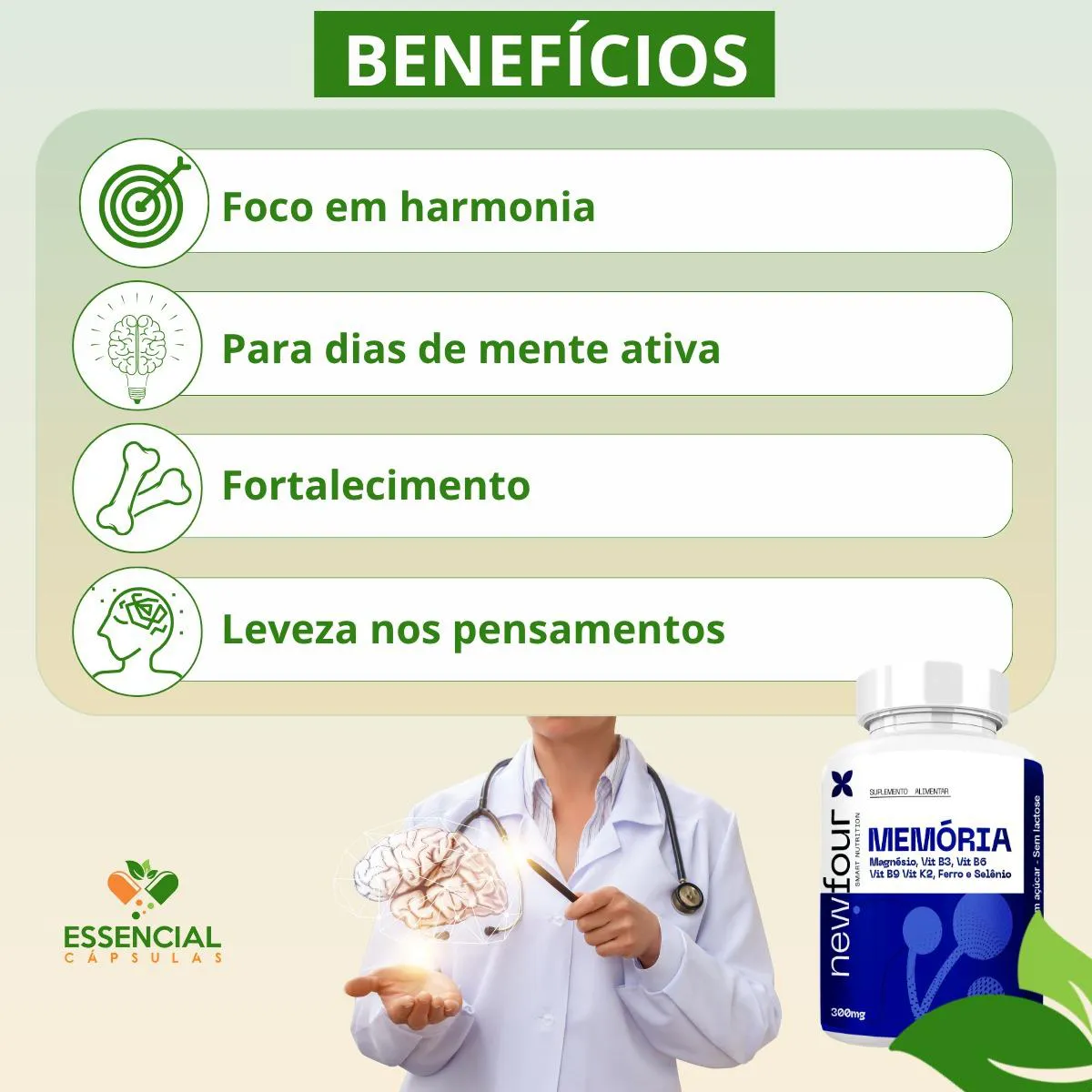 Memória - Magnésio , Vitaminas B3 , B6 , B9 , K2 , Ferro e Selênio 60 cápsulas