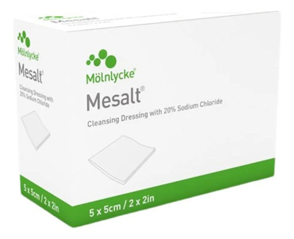 Mesalt é um curativo estéril impregnado com cloreto de sódio, indicado para o tratamento de feridas com exsudato moderado a intenso e feridas infectadas. O sal promove um ambiente úmido que ajuda a limpar naturalmente o leito da ferida, favorecendo a cicatrização por meio da remoção de tecido morto, resíduos e exsudato.