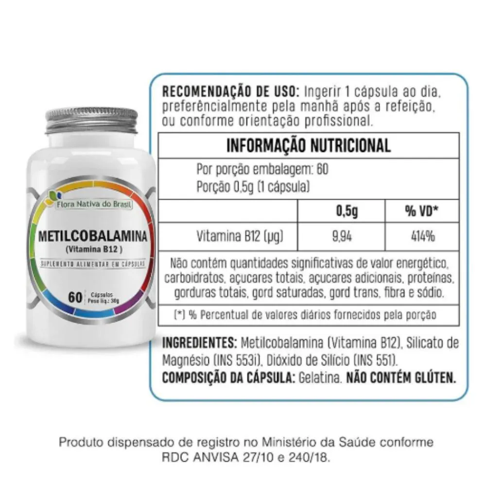 Benefícios da Vitamina B12 Metilcobalamina Flora Nativa: