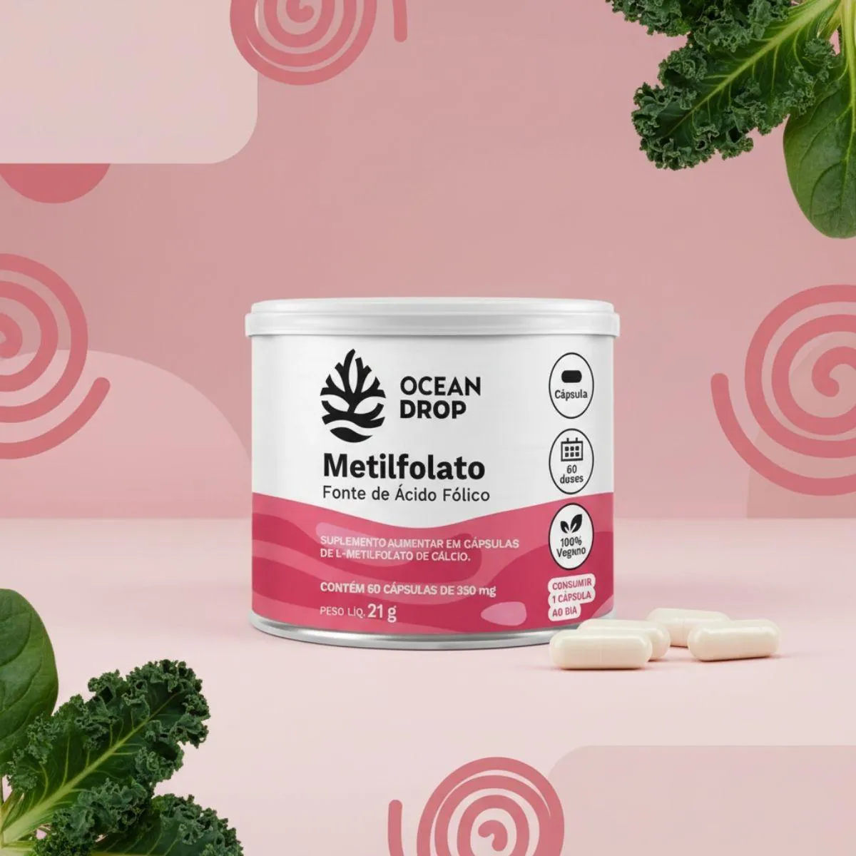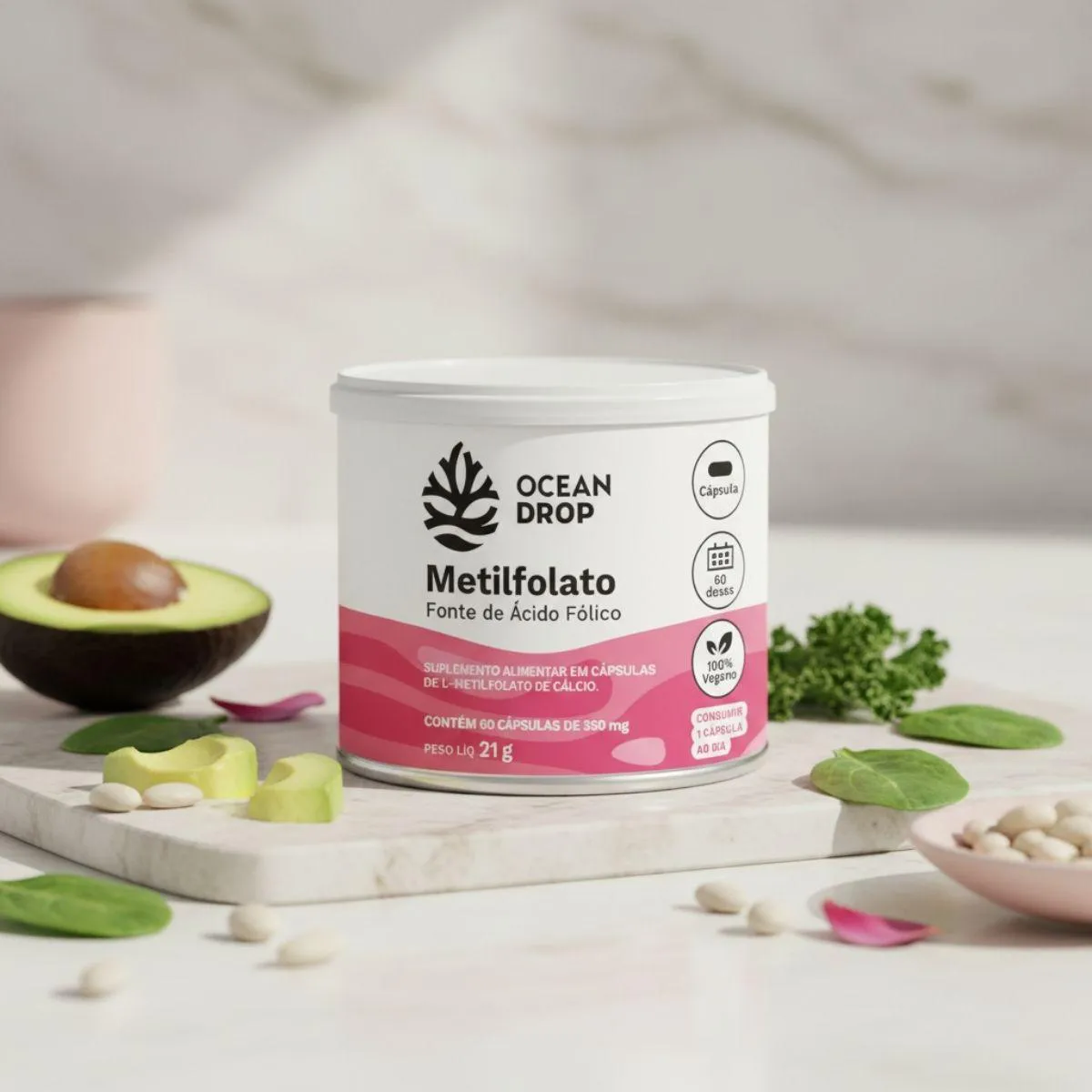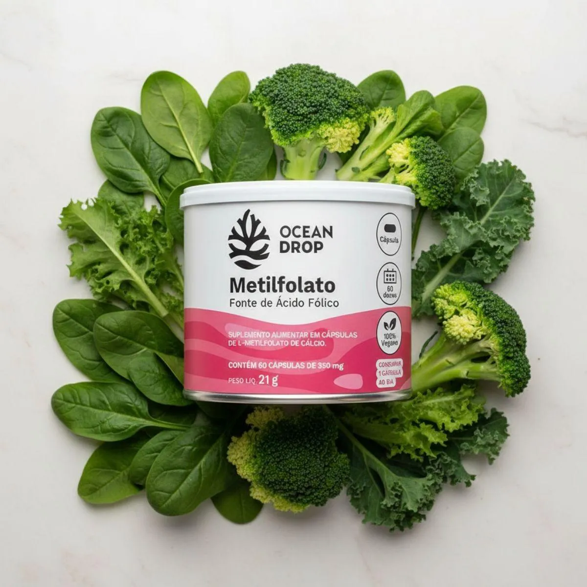 O que é e para que serve o Metilfolato Calcio Acido Folico 350Mg 60 Capsulas Ocean Drop Natural?