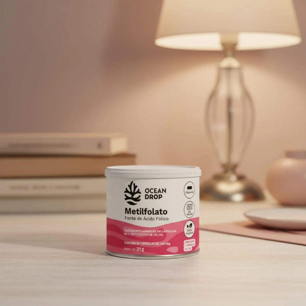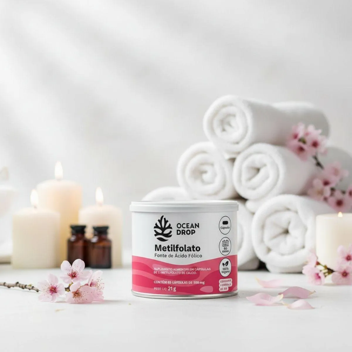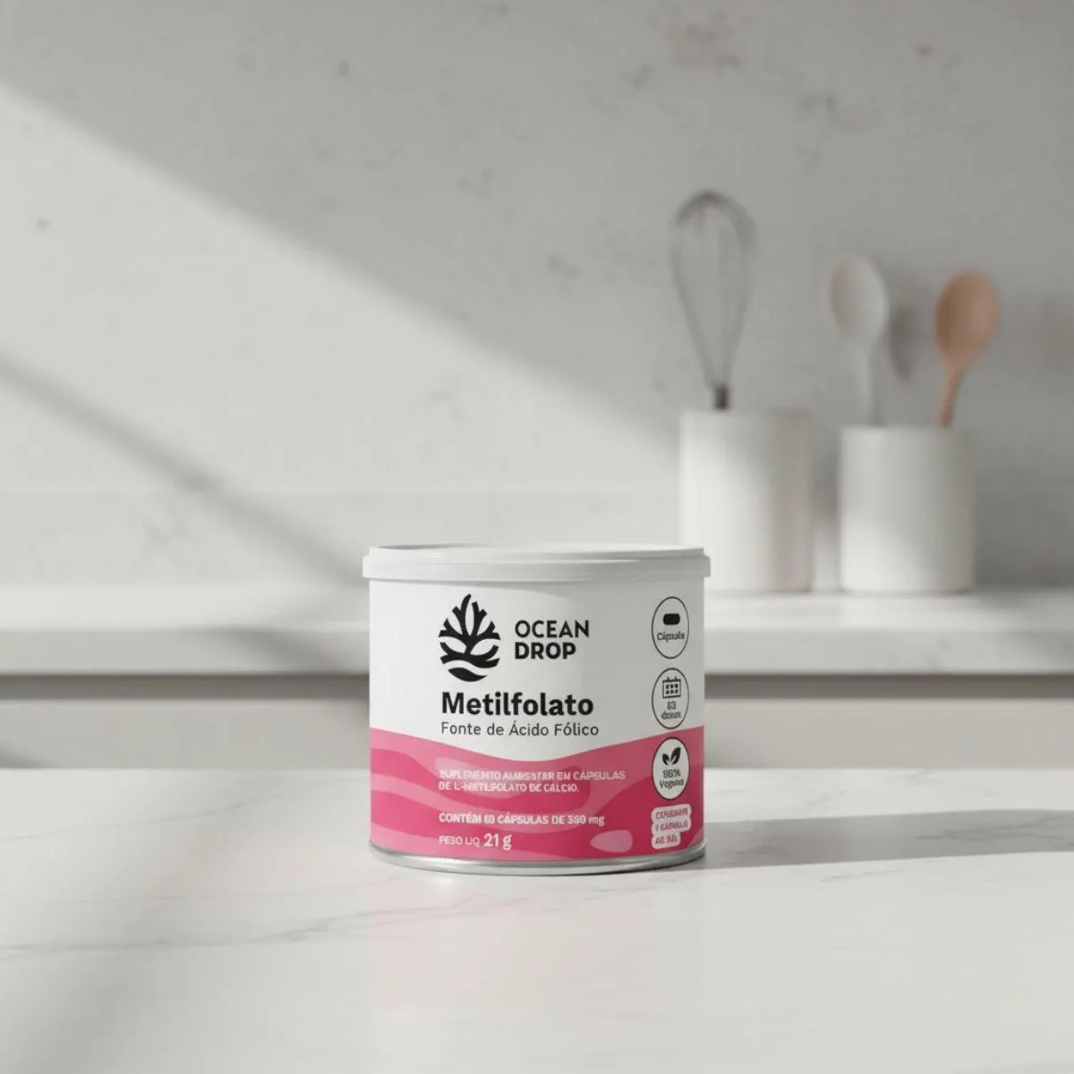 O Metilfolato Cálcio Ácido Fólico é um suplemento nutricional em formato de cápsulas, desenvolvido com uma formulação vegana e minimalista. Trata-se de um complemento alimentar com ingredientes transparentes e naturais, apresentado em frasco com 60 cápsulas de 350 mg.