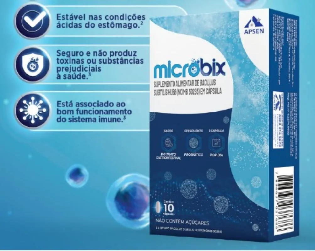 Microbix contém lactobacillus, que são bactérias benéficas naturalmente presentes no nosso intestino. Elas ajudam a manter o equilíbrio entre as “bactérias boas” e as “bactérias ruins”, criando um ambiente intestinal mais saudável.Esses lactobacillus utilizam um processo especial de proteção, semelhante à esporulação, que permite que eles:- Resistam à acidez do estômago