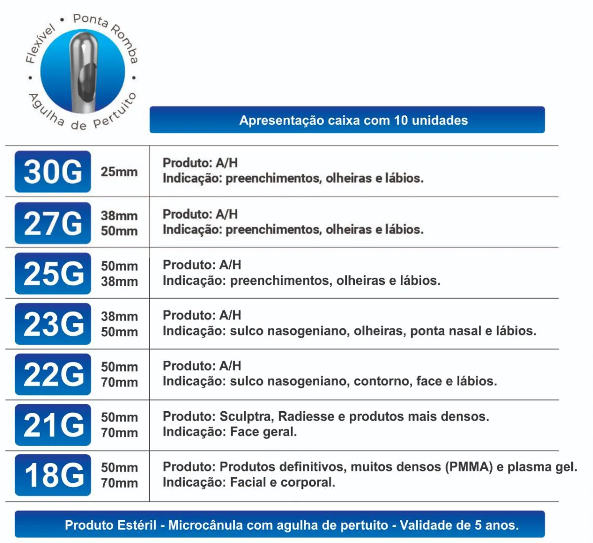 - Feitas de aço de alta qualidade com superfície lisa e siliconada para introdução sem traumas.