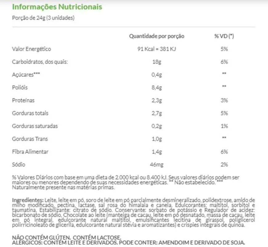 Contém leite e derivados. Pode conter: amendoim e derivado de soja.