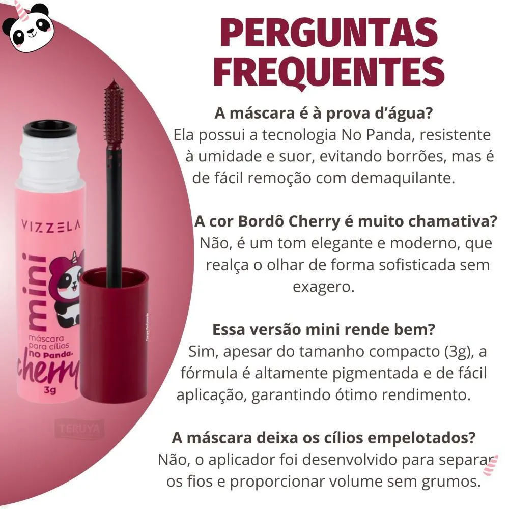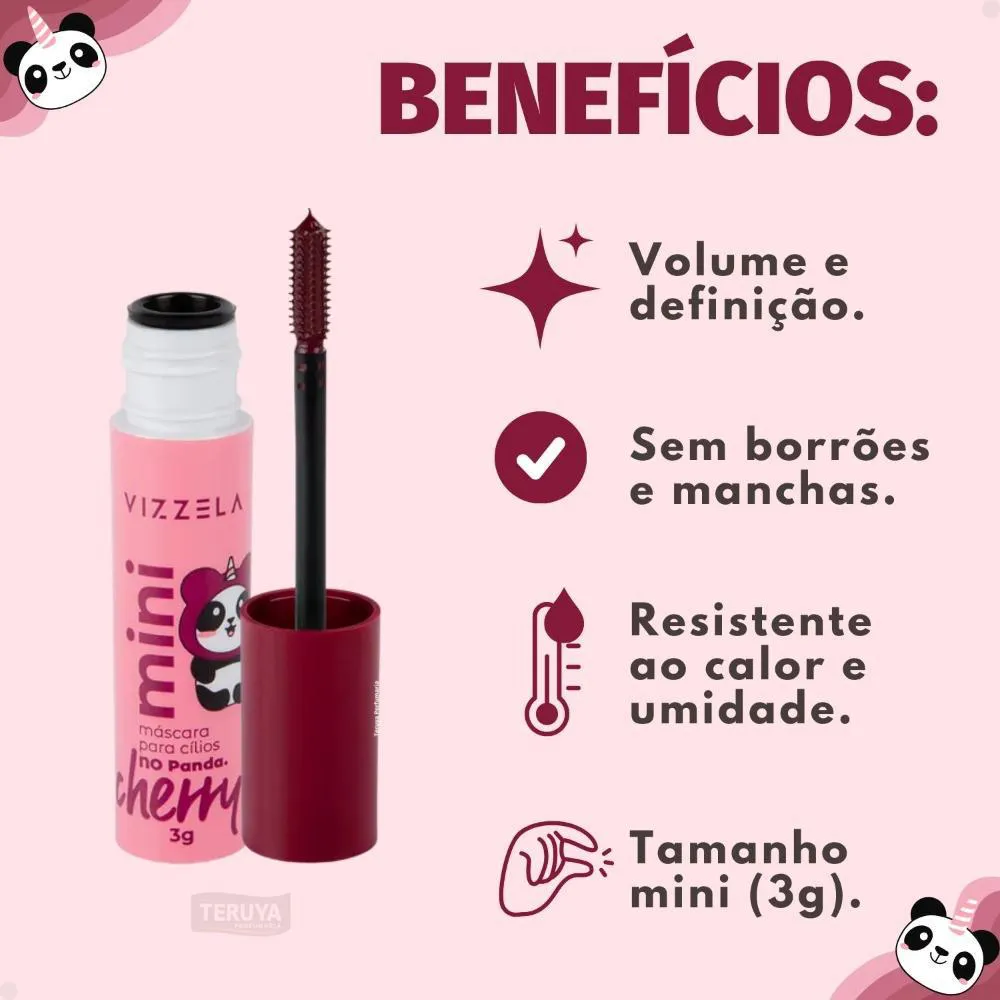 Cílios com volume e definição excepcionais.Cor intensa e vibrante no tom Bordô Cherry.Fórmula No Panda que evita borrões e manchas.Tamanho mini, ideal para portabilidade e praticidade.Diferenciais do Produto