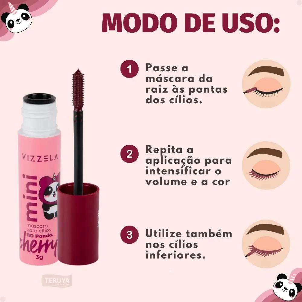 Mini Máscara de Cílios Vizzela No Panda Bordô Cherry 3g