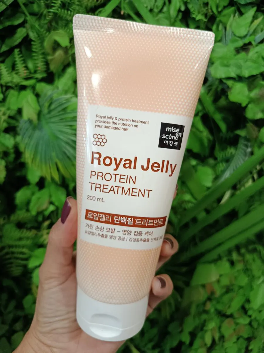 O Mise En Scène Royal Jelly Protein Tratamento é uma máscara capilar desenvolvida pela marca coreana Amore Pacific, com uma fórmula enriquecida com Geleia Real e Proteína do Feijão Preto. É um produto de tratamento intensivo para cabelos danificados, criado para oferecer nutrição, reparação e proteção capilar.